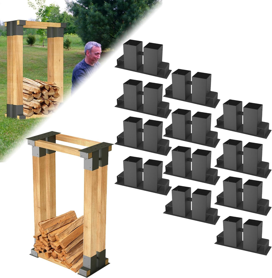 ACXIN Holzstapelhilfe 12 Stück Stabile Brennholz Stapelhilfe Holzstapelhalter Metall Holzunterstand