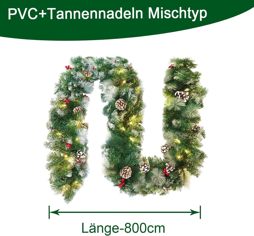 Weihnachtsstock, Weihnachtsgirlande Rebe, Mit LED Leicht, Künstliche Kranzdekoration, Roten Beeren u