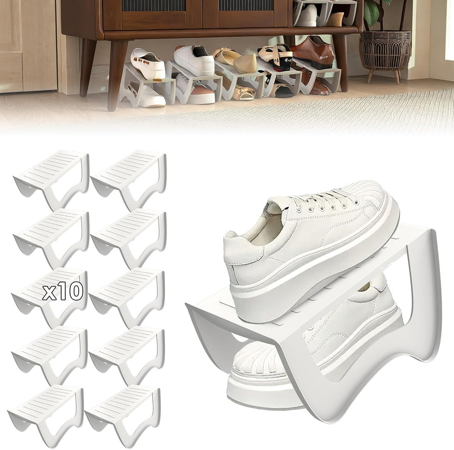 10 Stück rutschfest Schuhschlitz Organizer, Doppelschicht Schuhhalter, Schuhorganizer Schuhstapler a