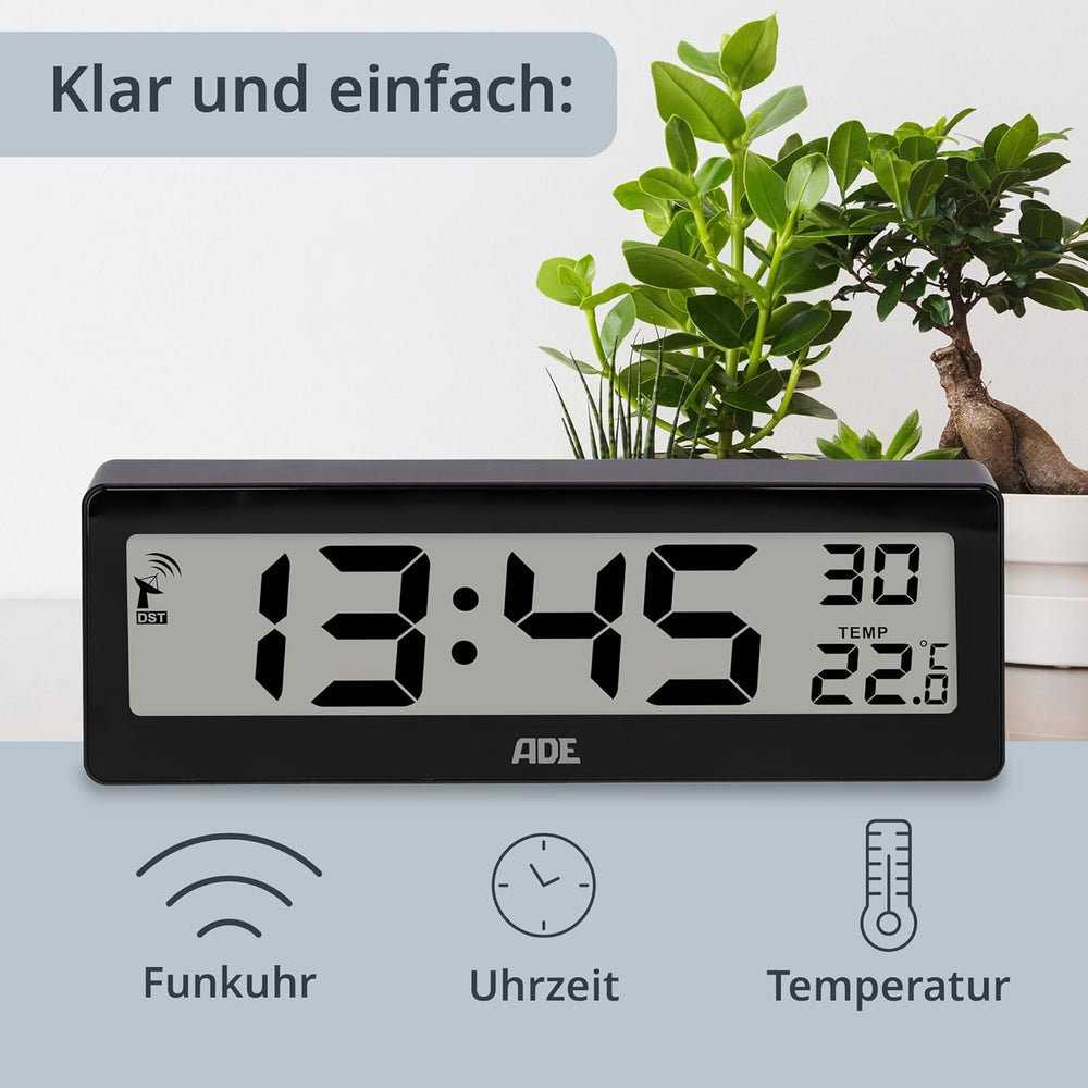 ADE Digitale Funkuhr Wohnzimmer mit Temperaturanzeige | sehr grosse Ziffern | gut ablesbares Display