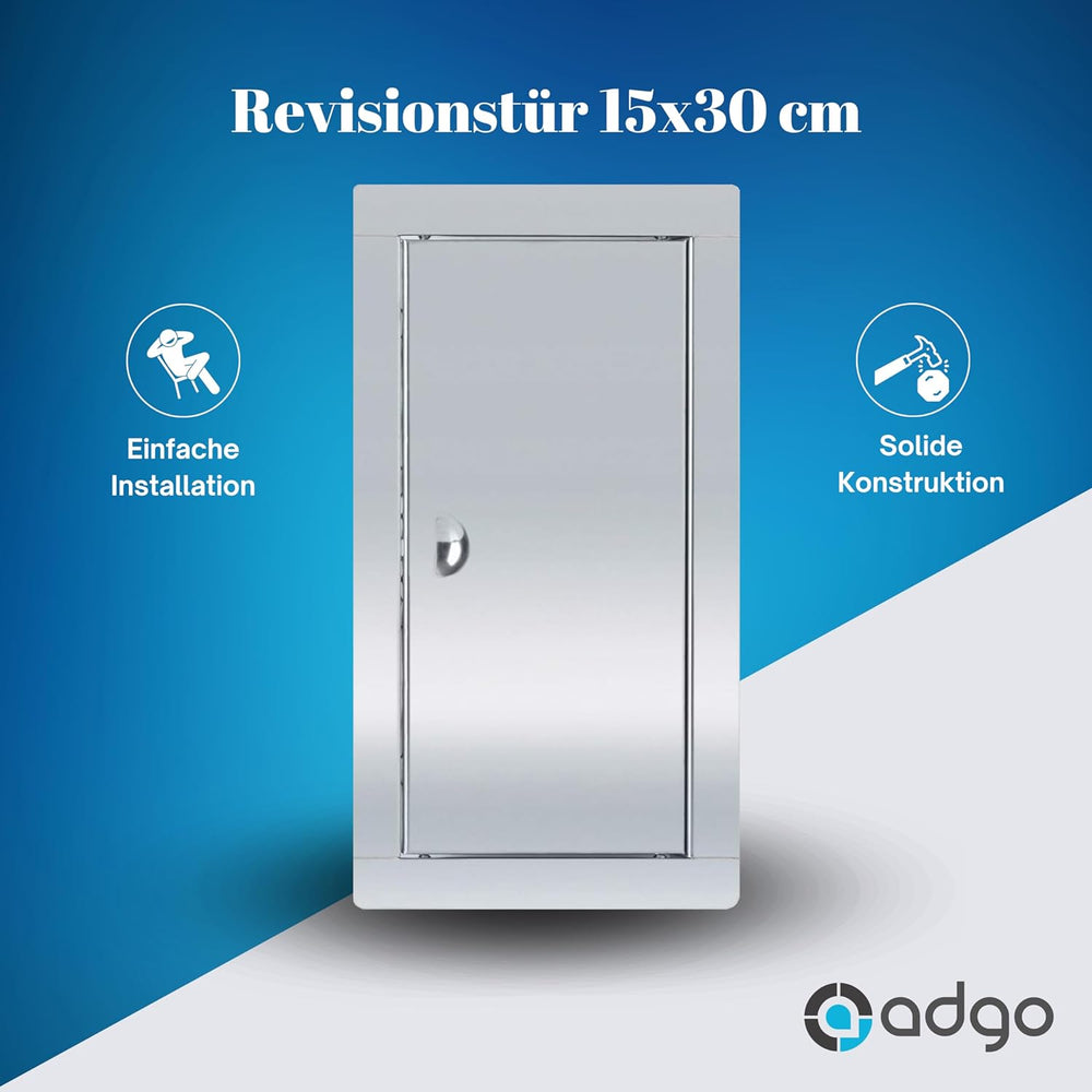 ADGO Revisionstür 15x30 cm, Wartungsklappe, Revisionsklappe Edelstahl mit Riegel, Revisionsklappen t