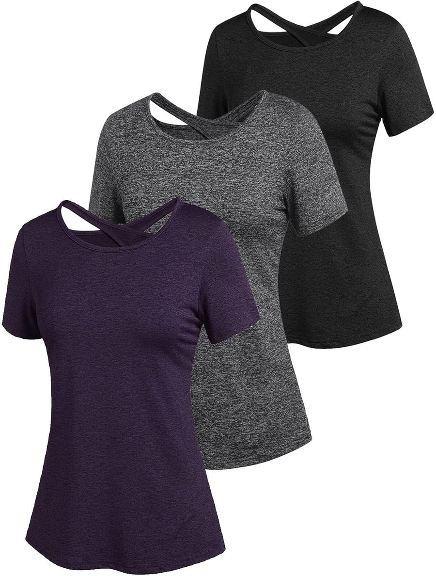 ADOME Damen Sport T-Shirt Kurzarm Sportshirt Funktionsshirt Yoga Shirt Rückenfreies Oberteil Laufshi