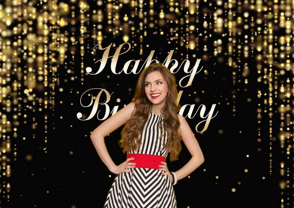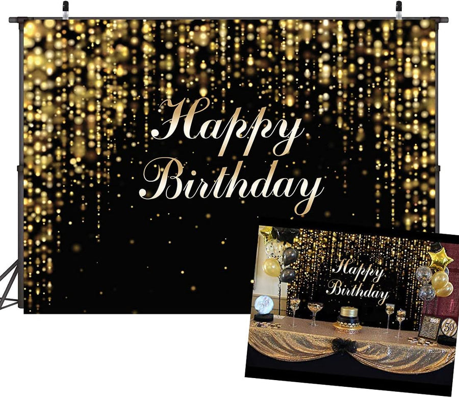 AIIKES 7x5FT Fotografie Alles Gute zum Geburtstag Hintergrund Schwarz und Gold Glitter Bokeh Hinterg