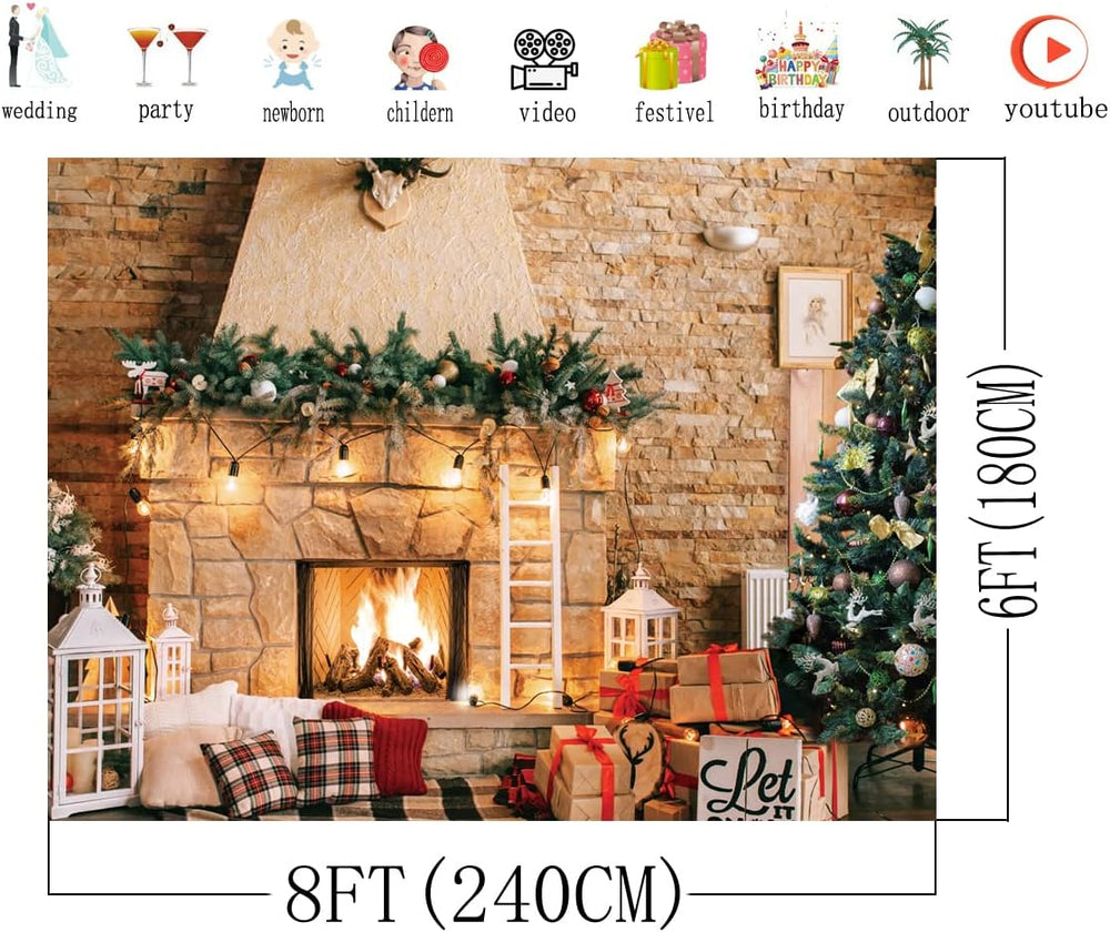AIIKES 8x6FT Weihnachtsfotografie Hintergrund Weihnachtsbaum Geschenk Kamin Hintergrund Baby Neugebo