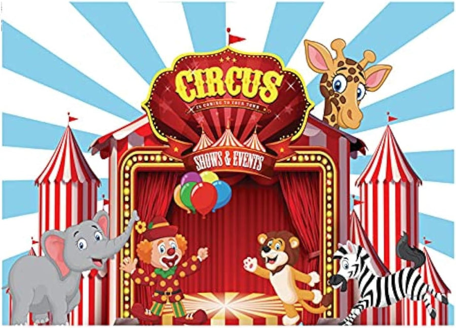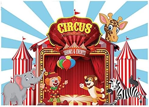 AIIKES 8x6FT Zirkus Fotografie Hintergrund Geburtstag Karikatur Party Rot Blau Foto Hintergrund Nied