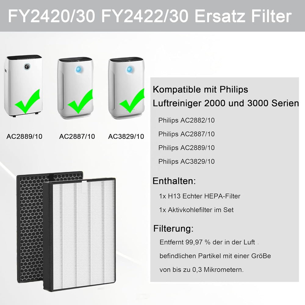Ersatz HEPA-Filter FY2422/30 und Aktivkohlefilter FY2420/30 Ersatzteil für Philips AC2889,AC2887,AC2