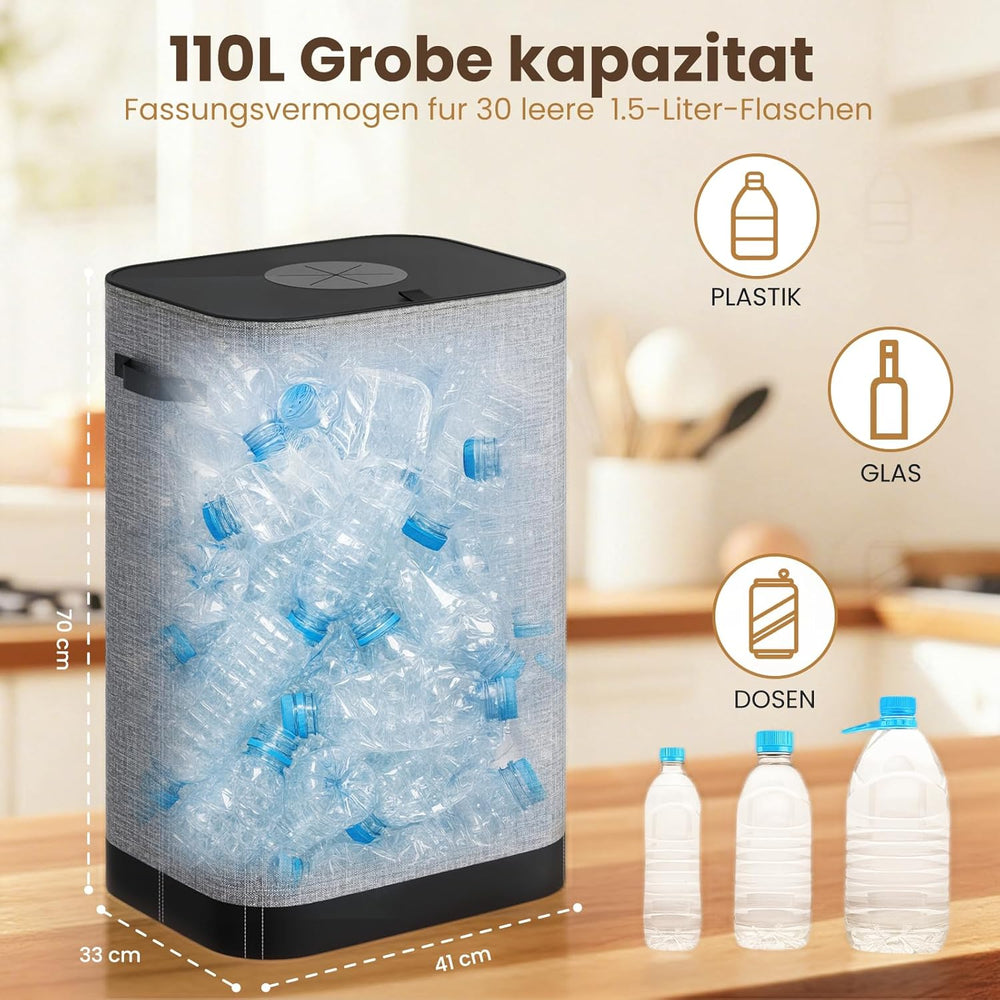 110L Pfandflaschen Sammelbehälter mit Deckel,Gross Pfandflaschen behälter mit Tragetasche,Flaschensa
