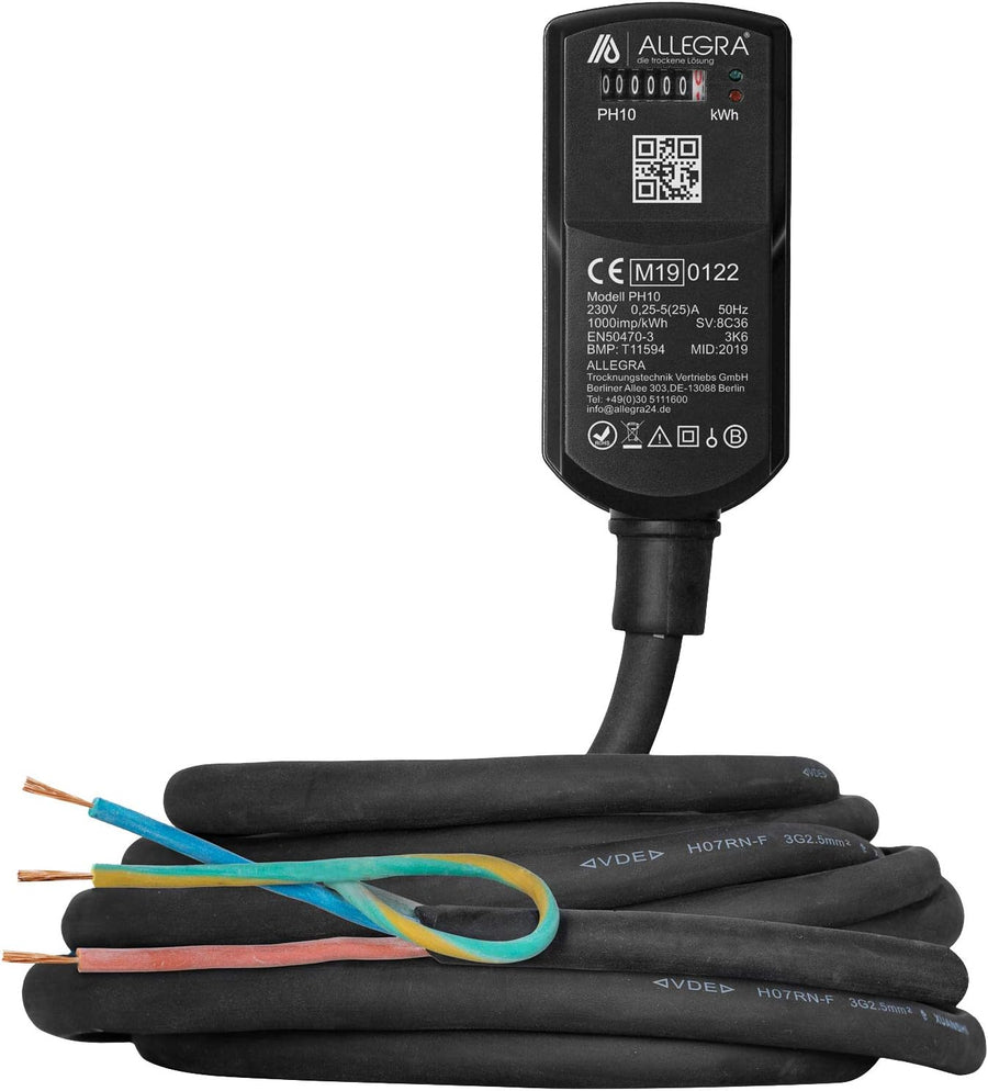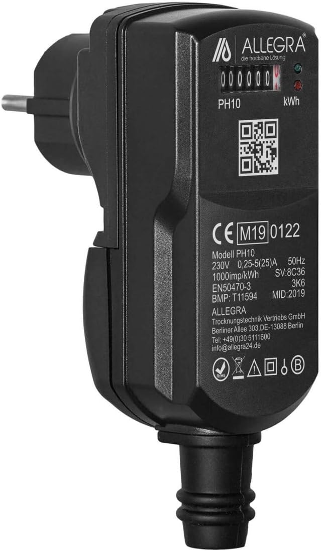ALLEGRA Mobiler MID Konform Stromzähler Zähler für Steckdose PH30 geeicht mit Zulassung und 1 Meter