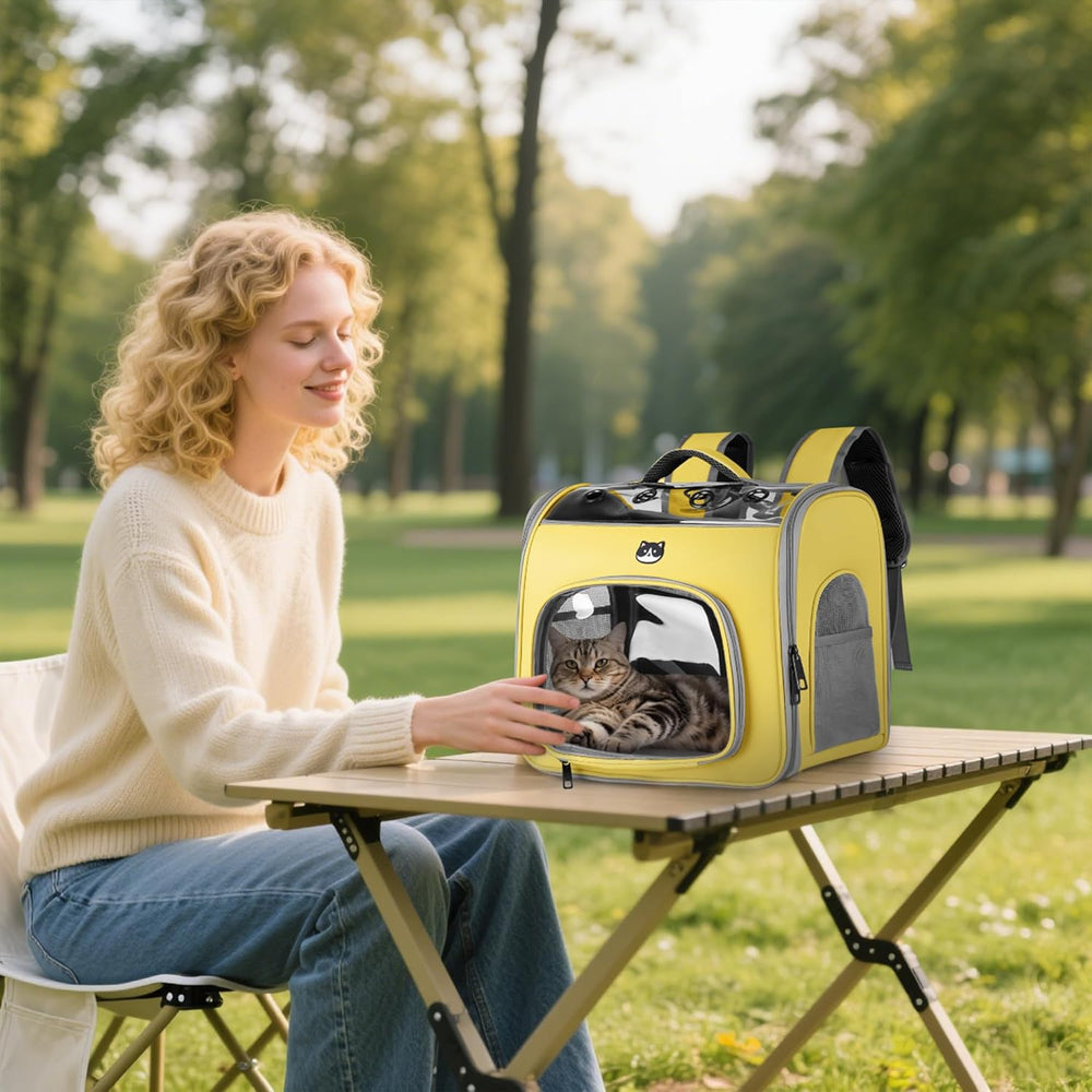 ALLSOPETS Katzenrucksack Faltbar Haustierrucksack mit Frontöffnung und Atmungsaktives Netzfenster Hu