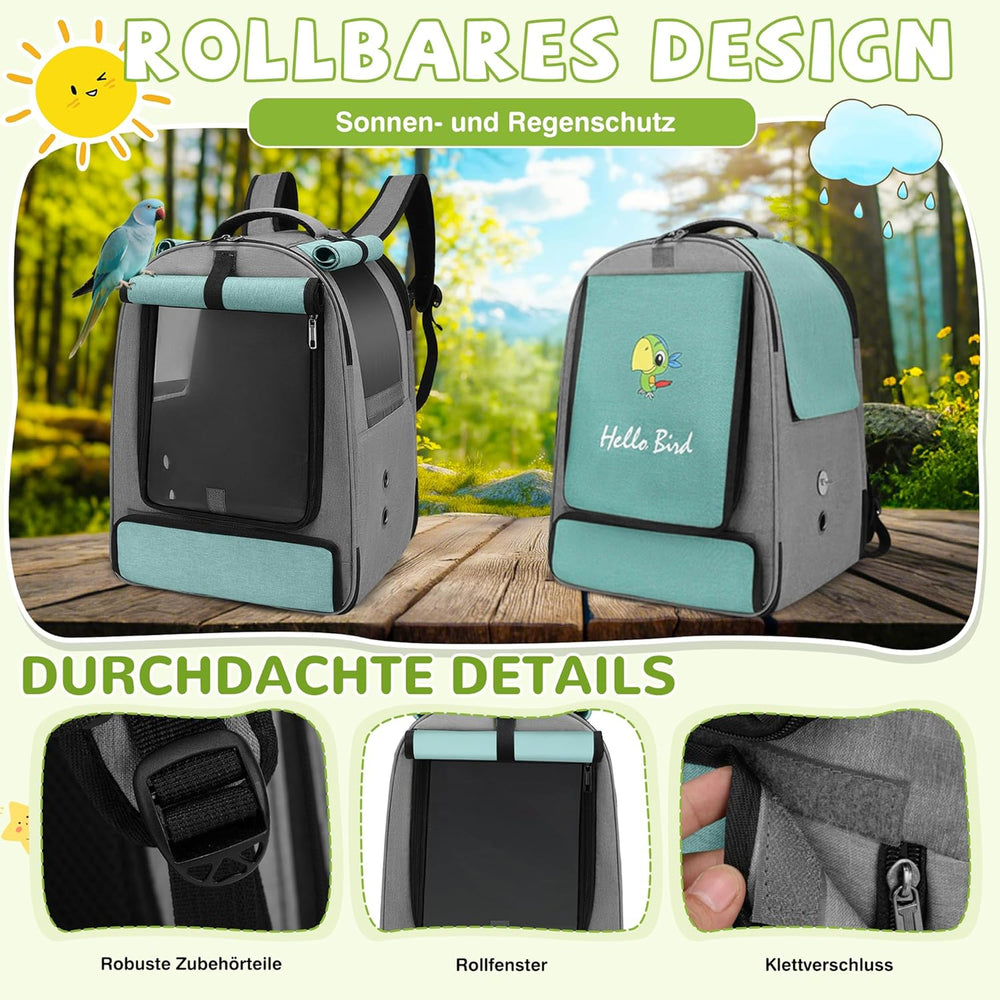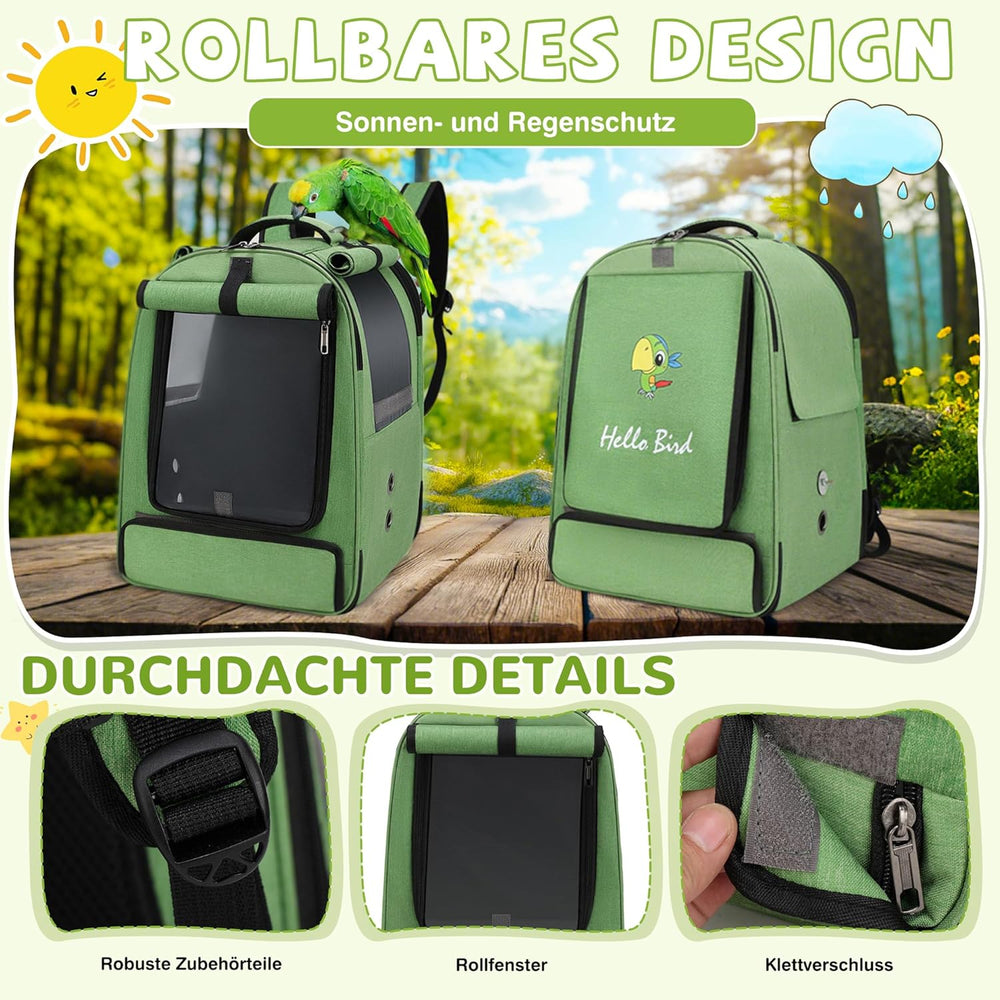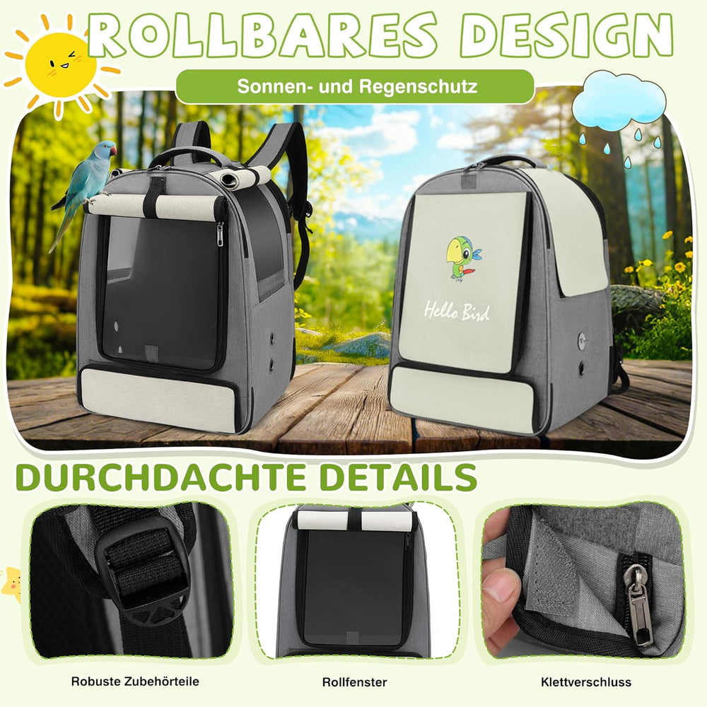 ALLSOPETS Vogelrucksack Leicht und Atmungsaktiv Tragbarer Papageiträger für Kleine Tiere mit Ständer