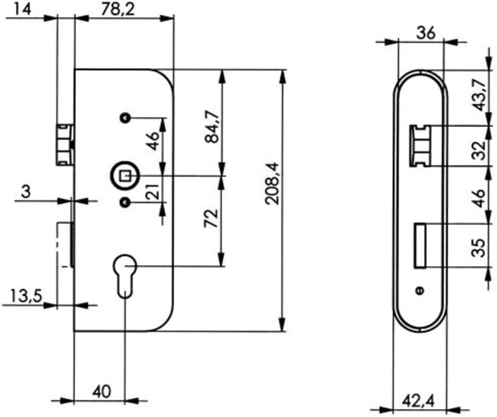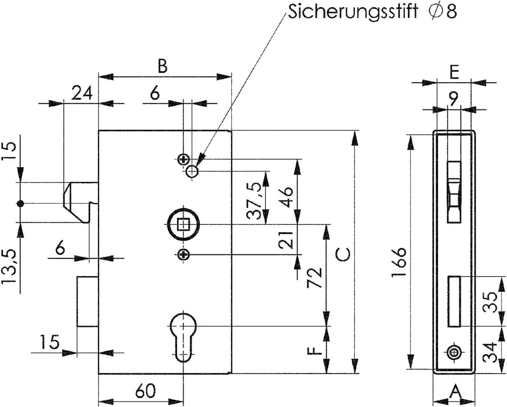 Schiebetor-Schlosskasten 140S Ausfü 30 mm, 30 mm