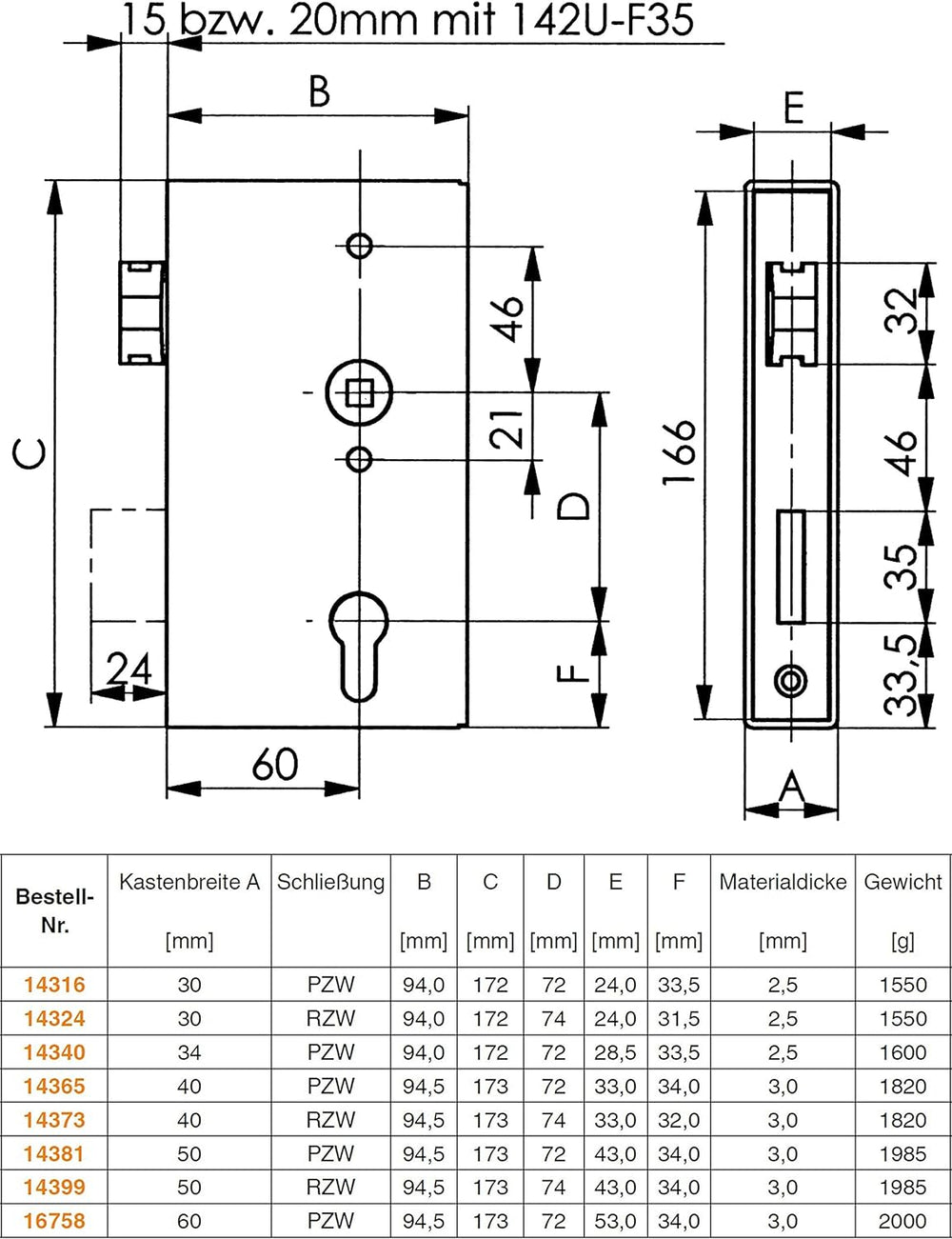Schlosskasten 140U Ausführung: mit Kastenbreite 30mm - Dorn 60 mm, Kastenbreite 30mm - Dorn 60 mm