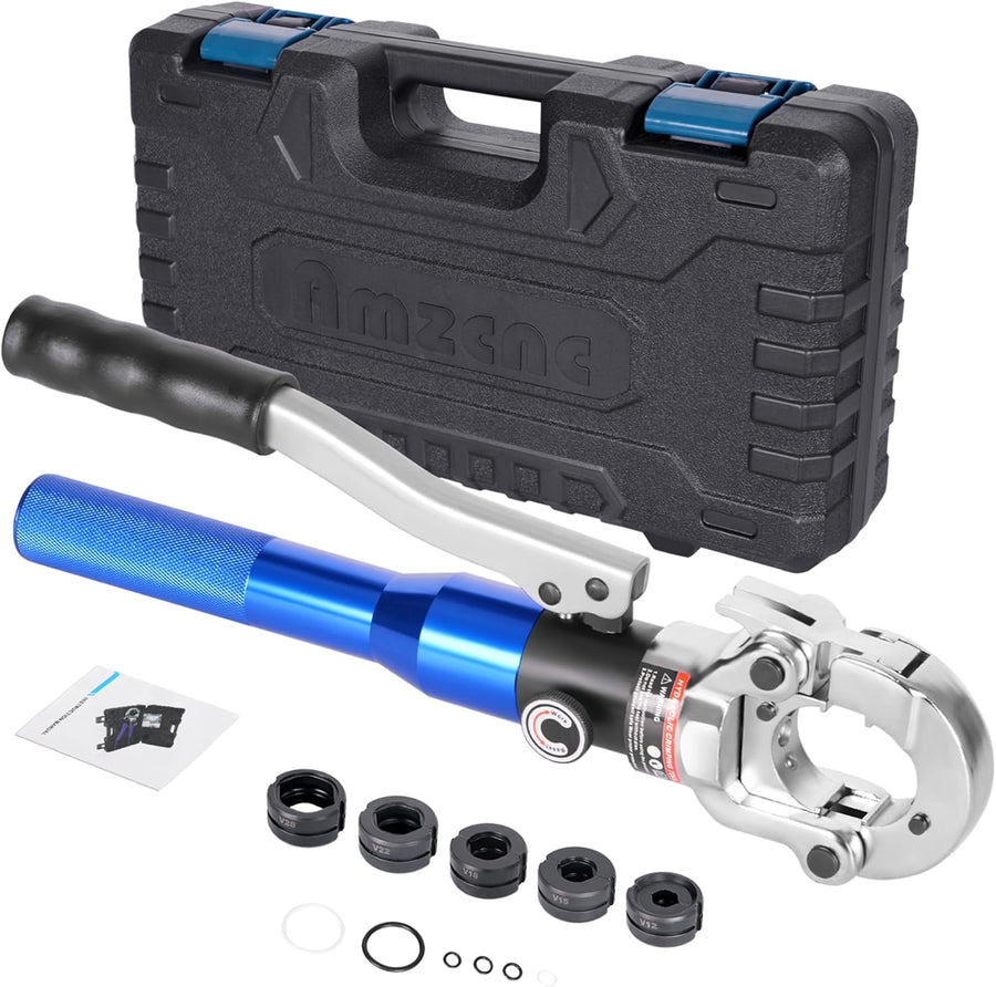 AMZCNC Profi Presszange V-Kontur 12-15-18-22-28 Set Presswerkzeug,für Kupferrohr, C-Stahlrohr und Ed