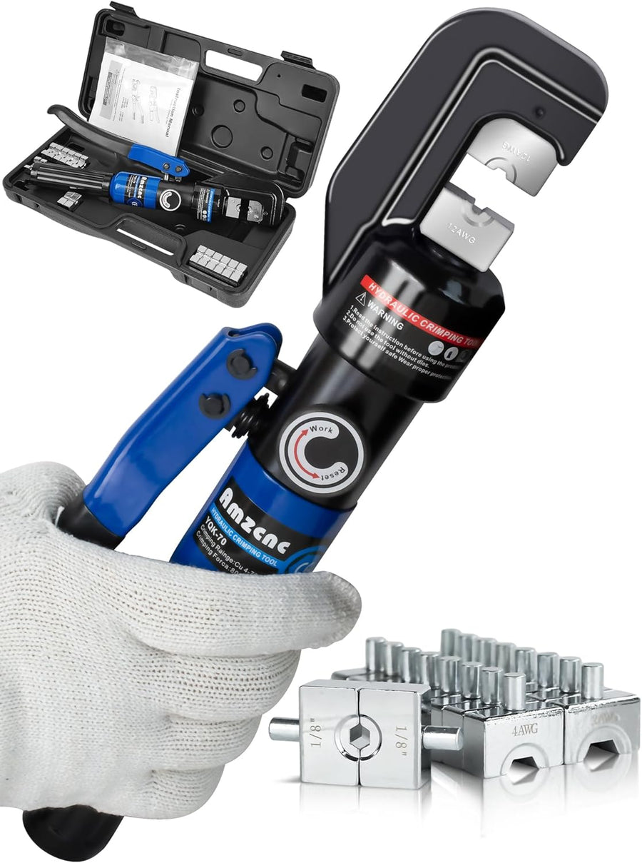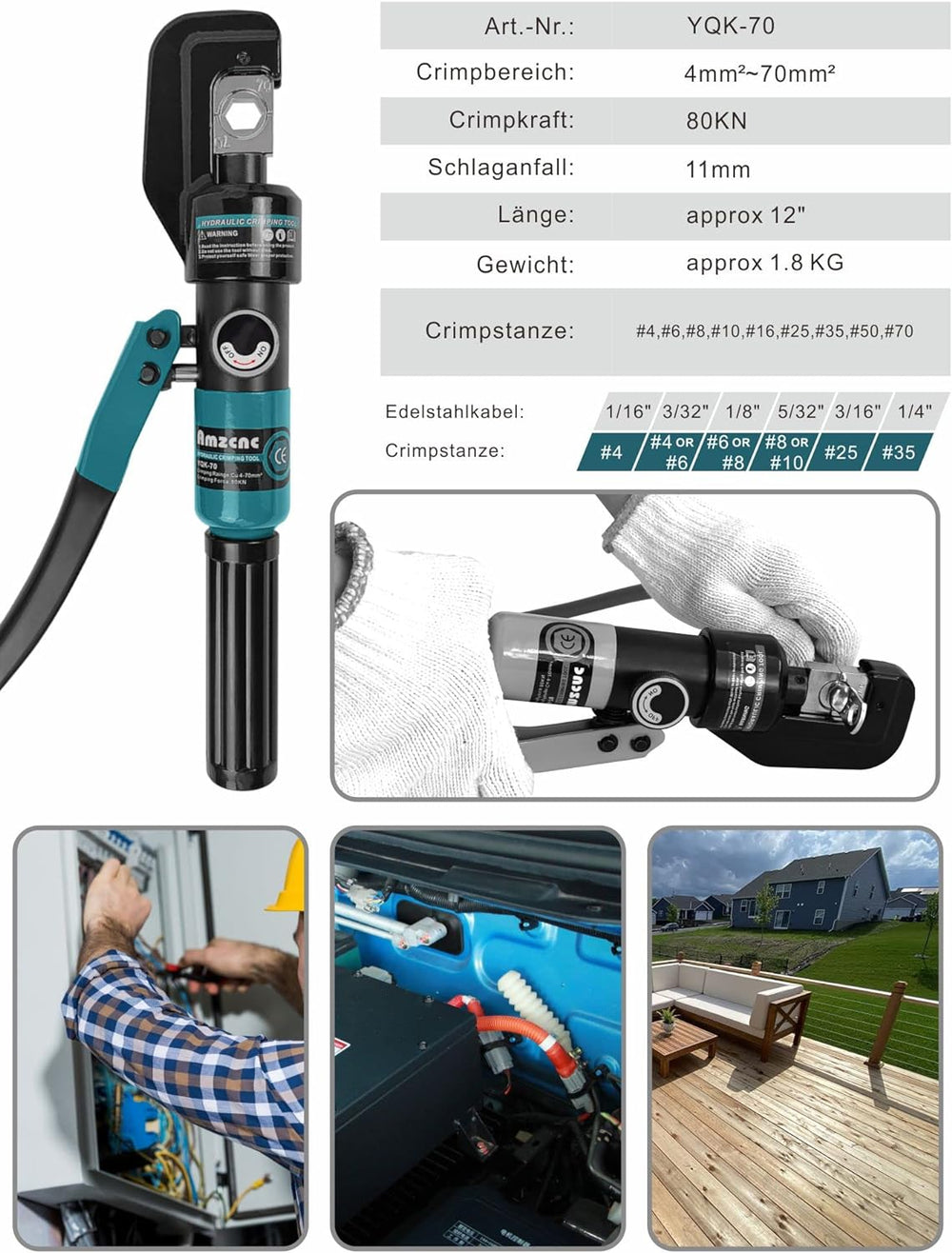 AMZCNC 8 Tons Hydraulische Presszange Crimpzange 4-70 mm² Zange Kabelschuhzange with 9 Pairs of Dies