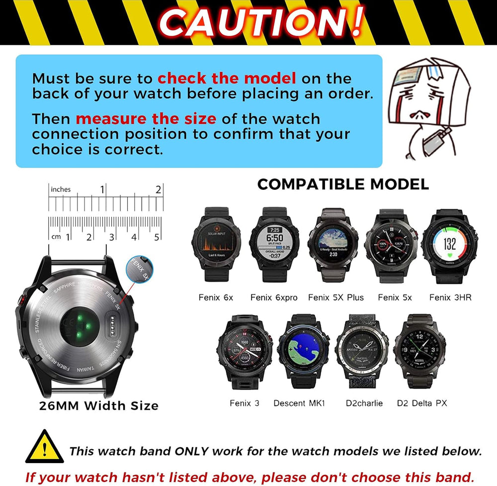 ANBEST Kompatibel mit Fenix 5X/Fenix 5X Plus/Fenix 6X Armband mit Schnell Freisetzung Funktion 26mm