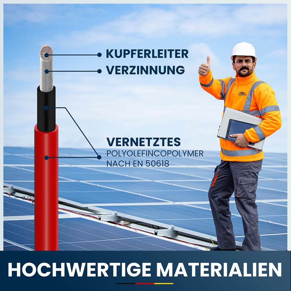 ANFIL® 20m Solarkabel 4mm² [TÜV SÜD geprüft & UV-beständig] – PV Kabel 4mm² für Solaranlagen (Erdv
