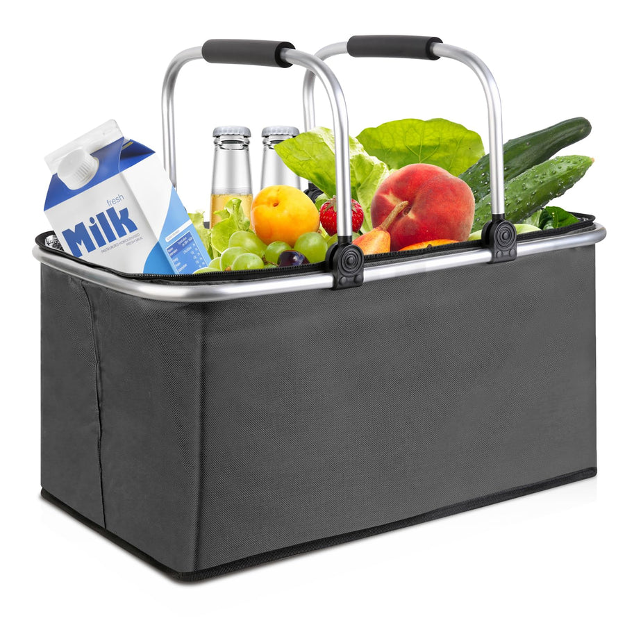 kühlkorb einkaufskorb 30L,Mit Reissverschluss isolierter, Faltbarer Picknickkorb,Klapprahmen aus Alu
