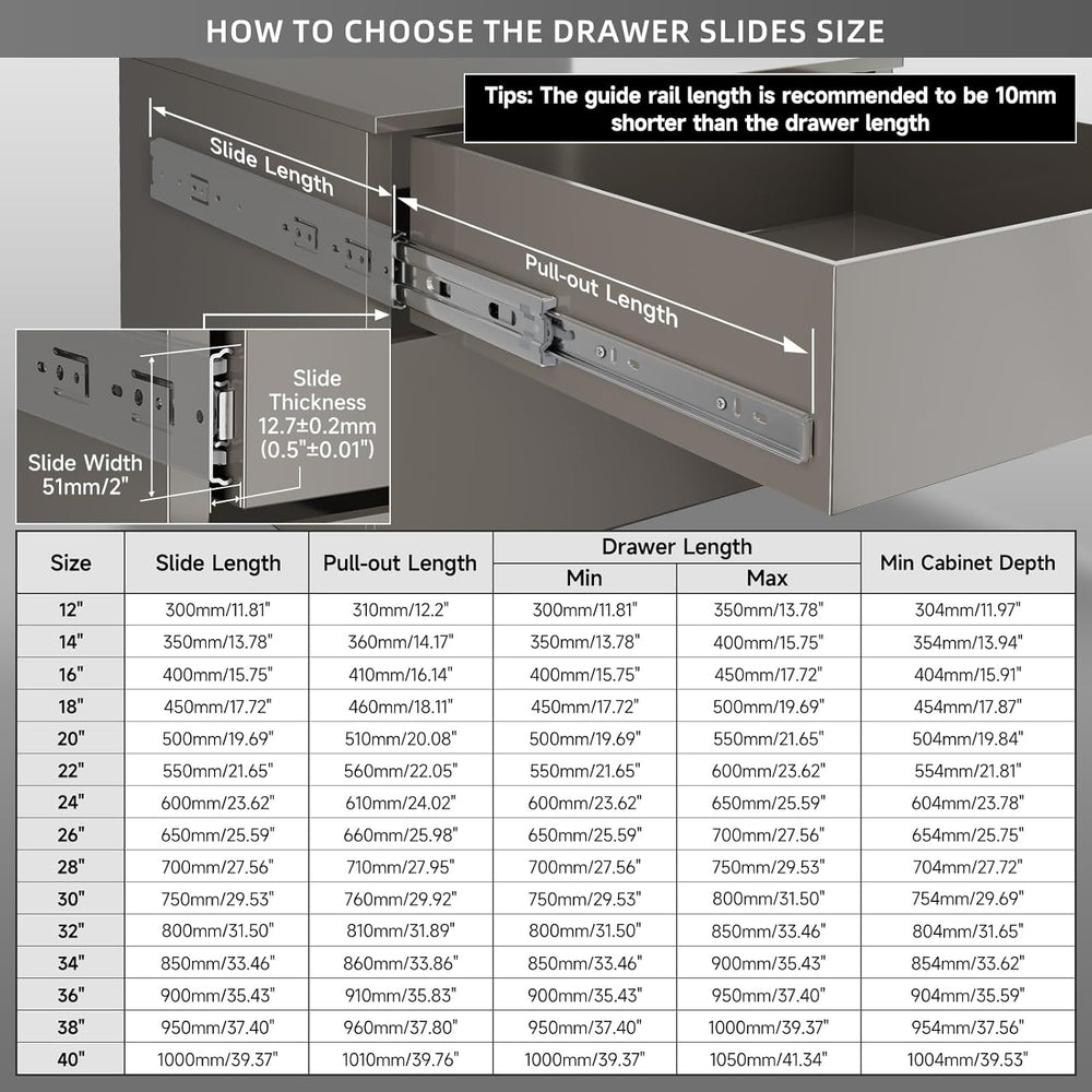 AOLISHENG Schwere Schubladenschienen Vollauszug 850 mm Kugellager schubladenführungen 50 kg Tragkraf