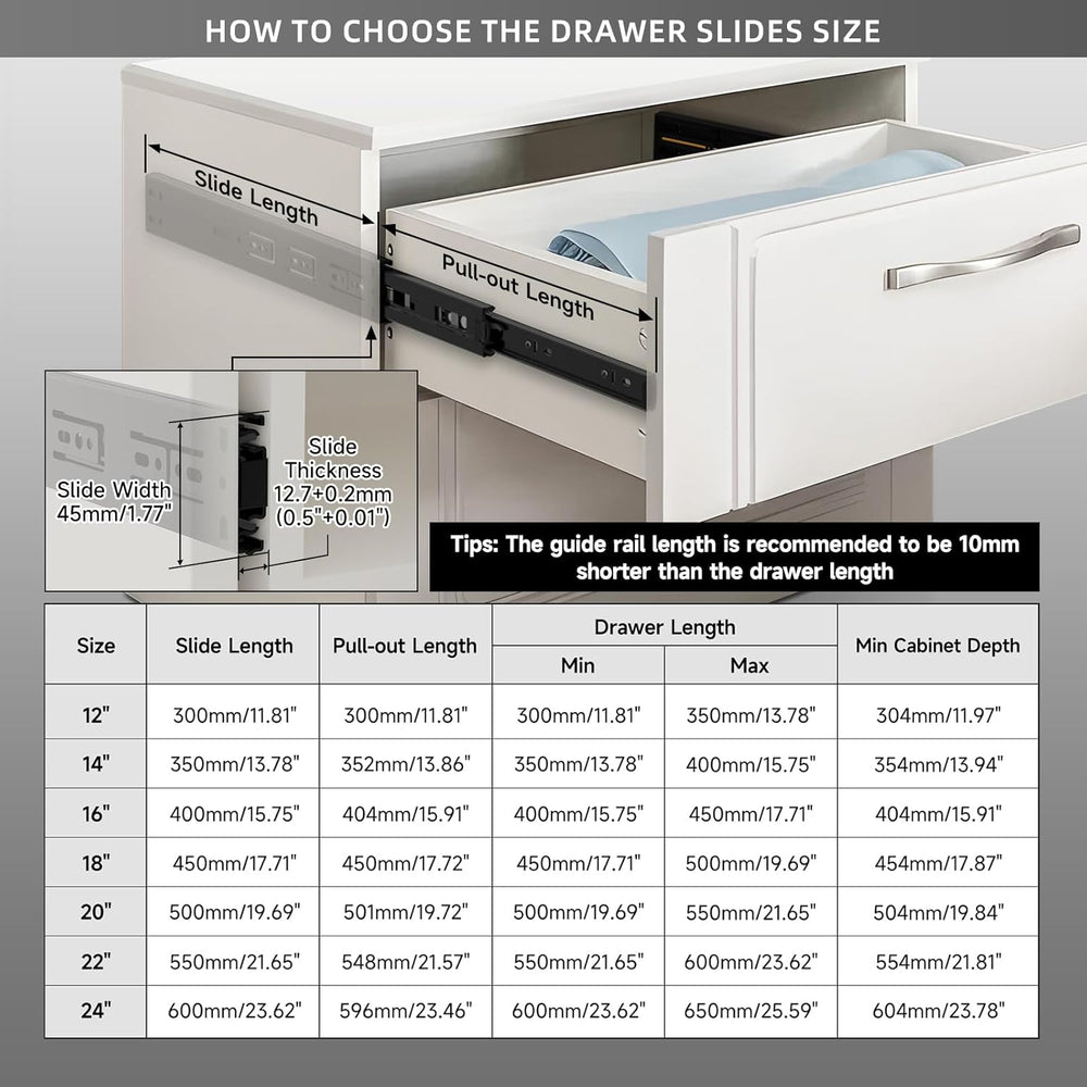 AOLISHENG Kugellager Schubladenschienen softclose 450mm, schwere Belastbarkeit 45 kg, 5 Paar (10 Stü