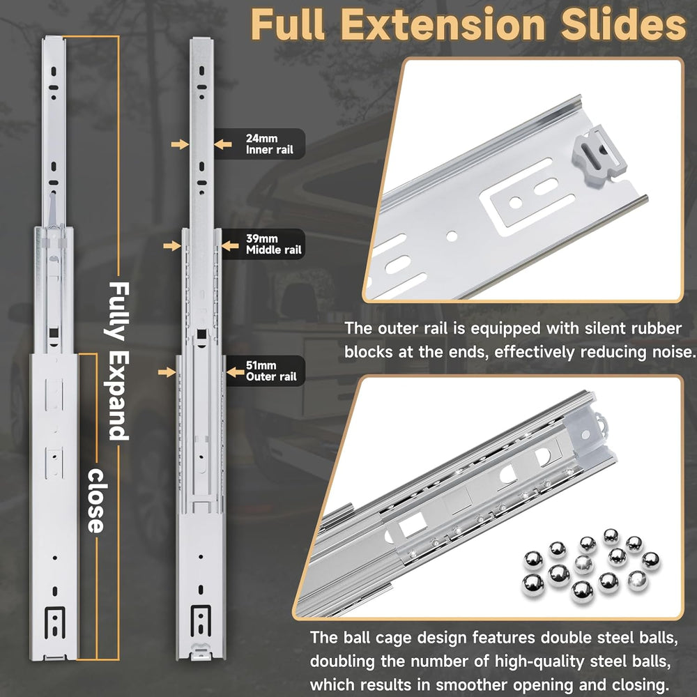 AOLISHENG Schwere Schubladenschienen Vollauszug 600 mm Kugellager schubladenführungen 50 kg Tragkraf