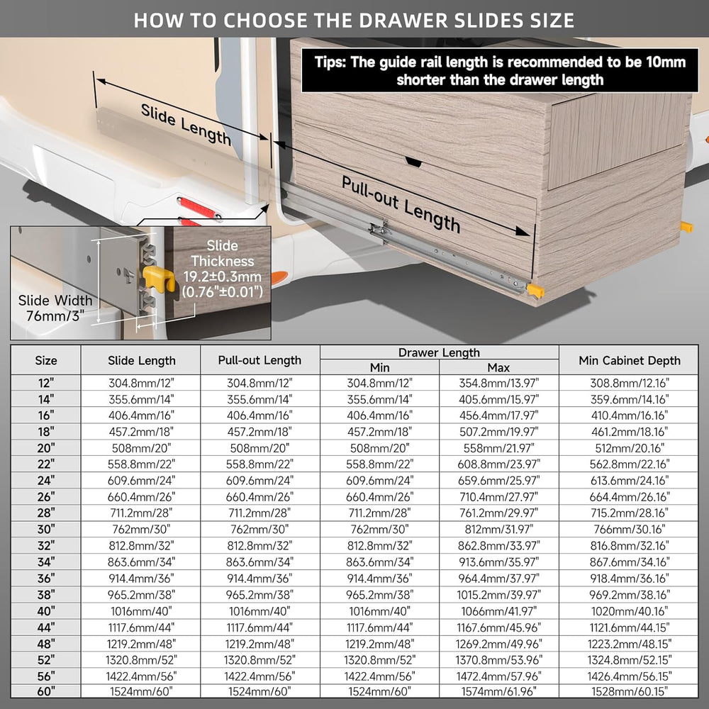 AOLISHENG Schwere Schubladenschienen Vollauszug 550 mm Kugellager schubladenführungen 60 kg Tragkraf
