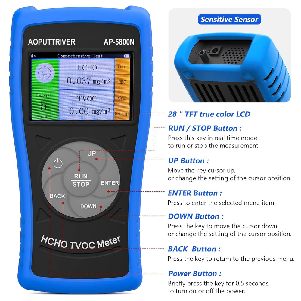 AOPUTTRIVER Formaldehyd Messgerät AP-5800N Innenraum-Luftqualitätsmessgeräte Verschmutzung Messgerät