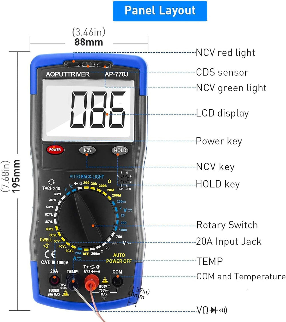 Automotive Multimeter AP-770J Auto Digital Multimeter manueller Streckenauto-Multitester Voltage Det