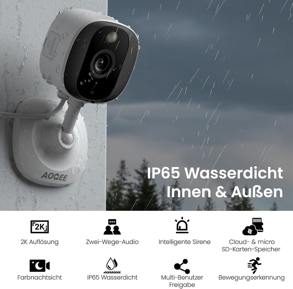 2K Überwachungskamera Aussen/Innen - Kamera Überwachung Aussen, WLAN Camera Indoor/Outdoor, Hundekam