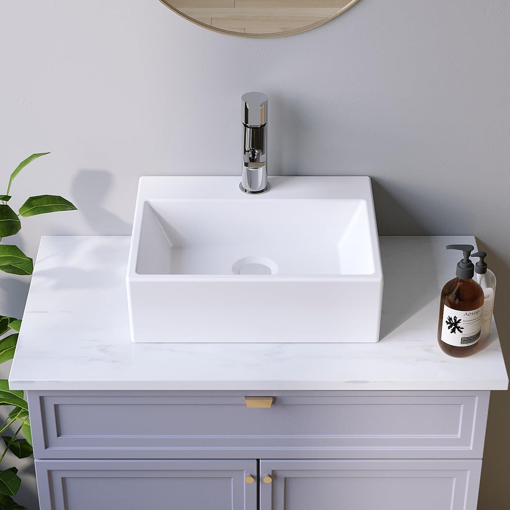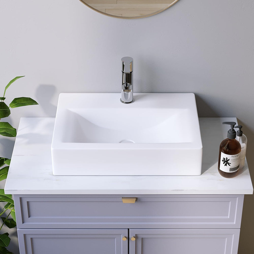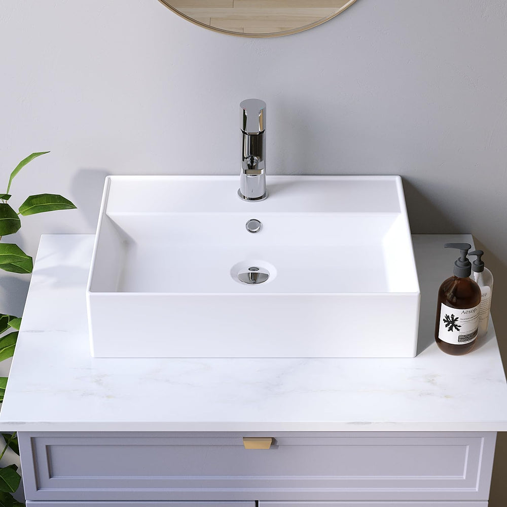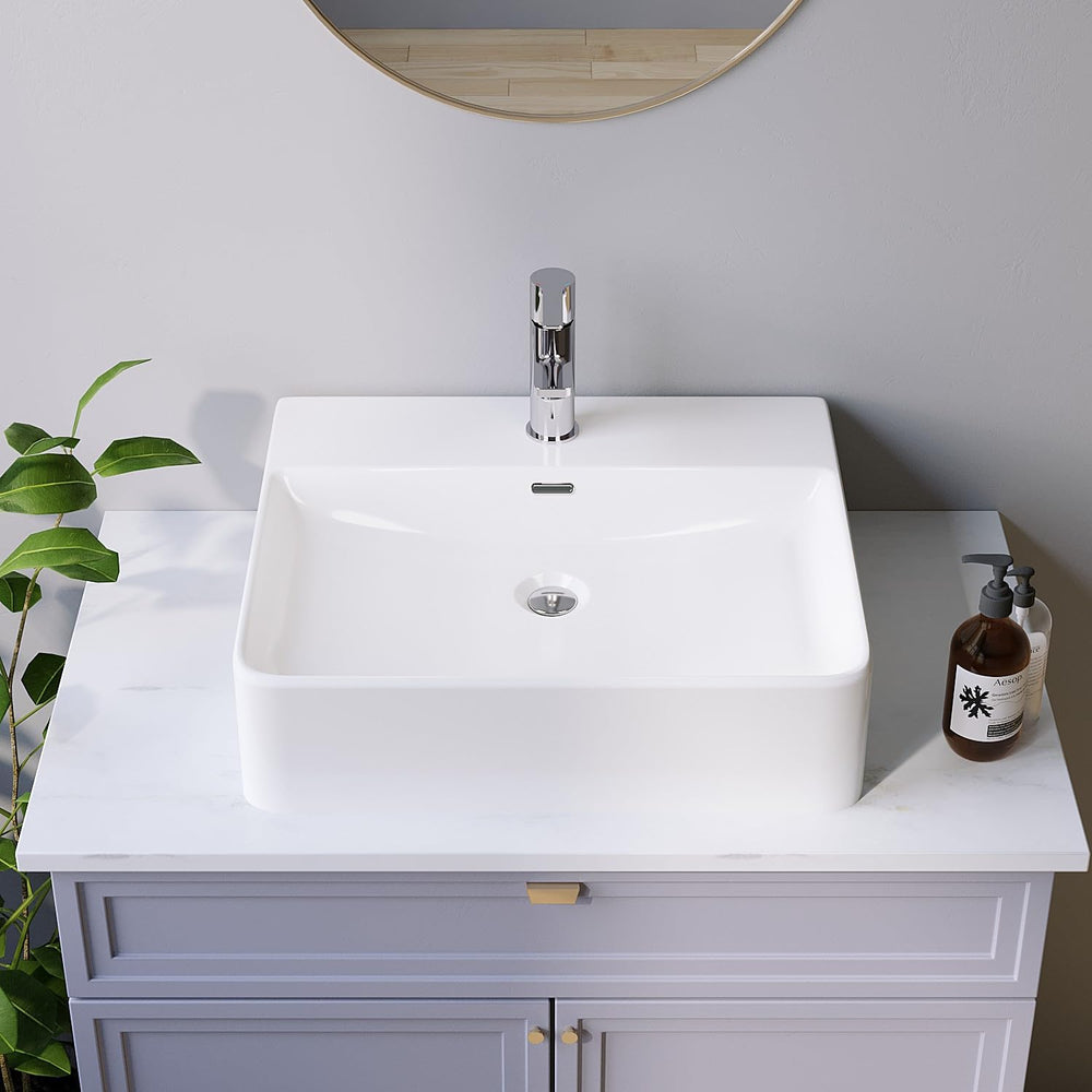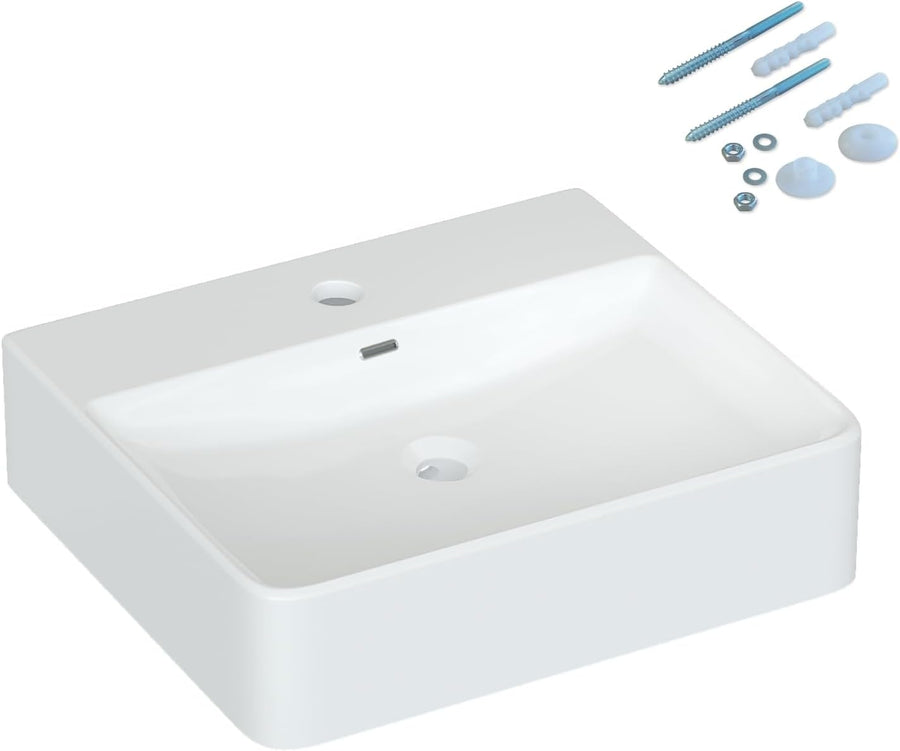 Waschbecken aus Keramik Weiss Eckig 50 x 42 cm Aufsatzwaschbecken für Waschtisch Unterschrank Waschp