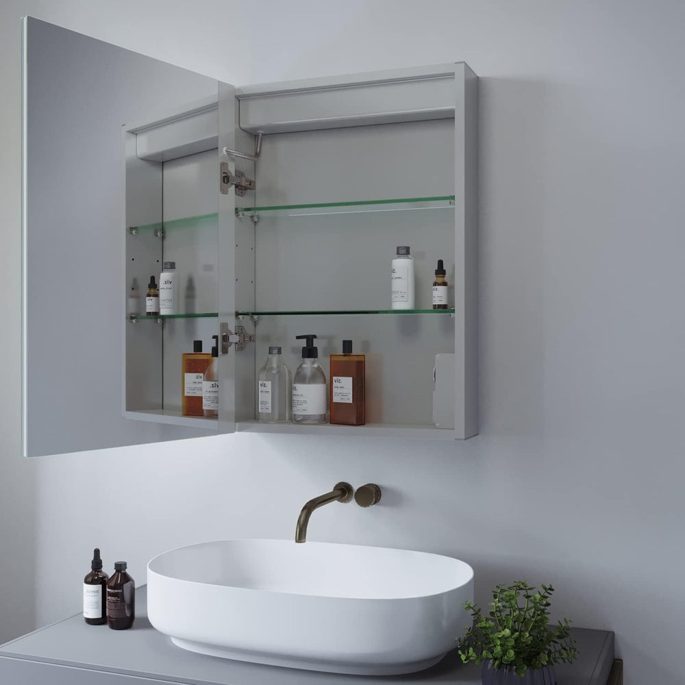AQUABATOS Spiegelschrank Bad mit Beleuchtung 65x60 cm Badezimmerschrank LED Spiegel Schrank Aluminiu