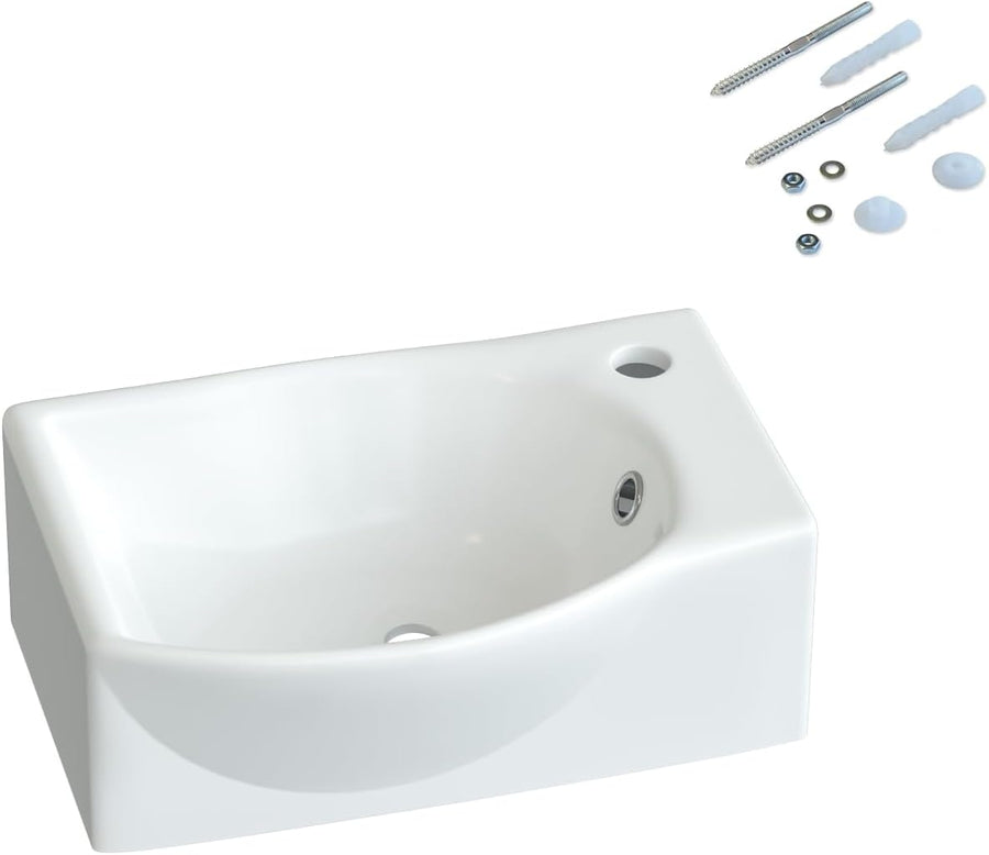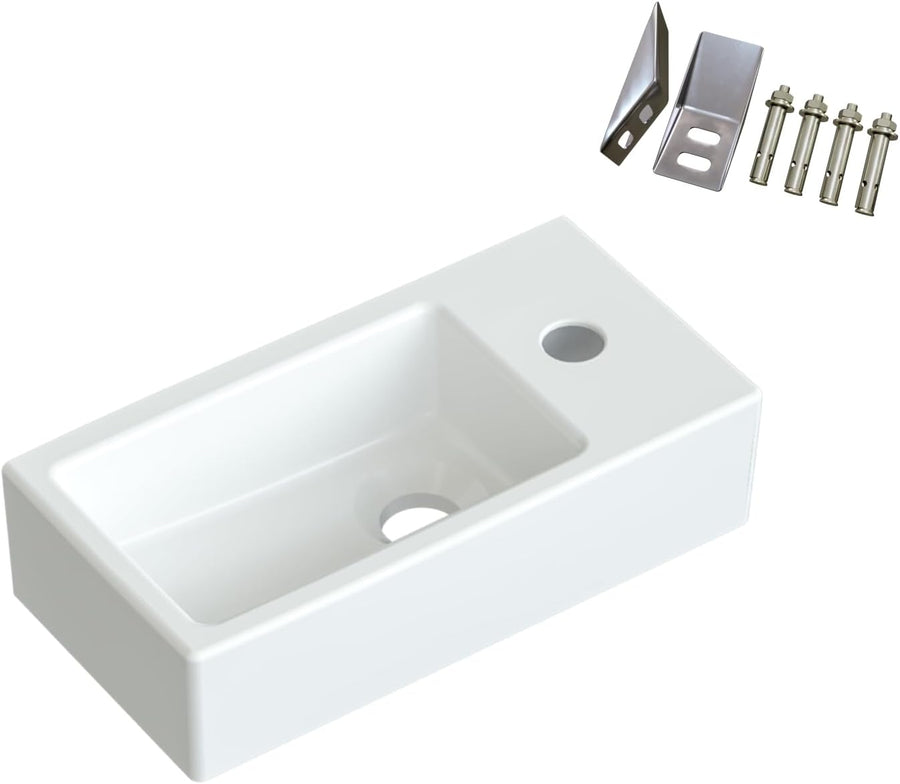 Waschbecken Keramik Waschtisch Hängewaschbecken klein Handwaschbecken Weiss Eckig 40 x 20 cm Badezim