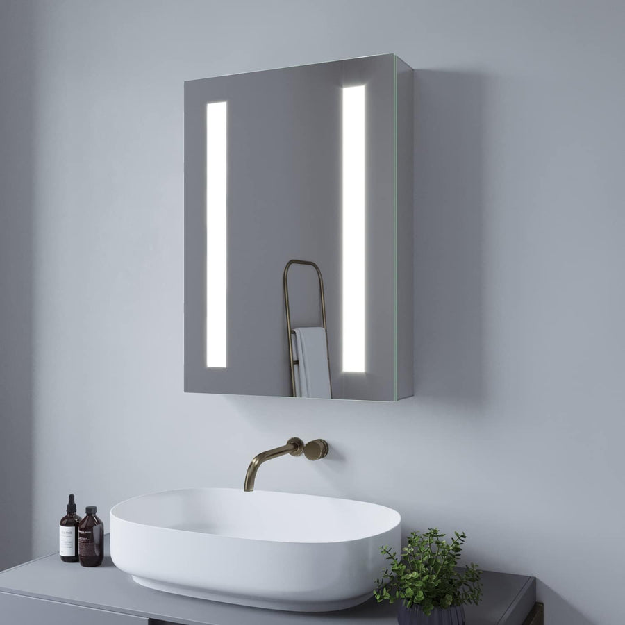 Badezimmer Spiegelschrank 50 x 70 cm mit LED Beleuchtung Badezimmerschrank Aluminium Badschrank eint