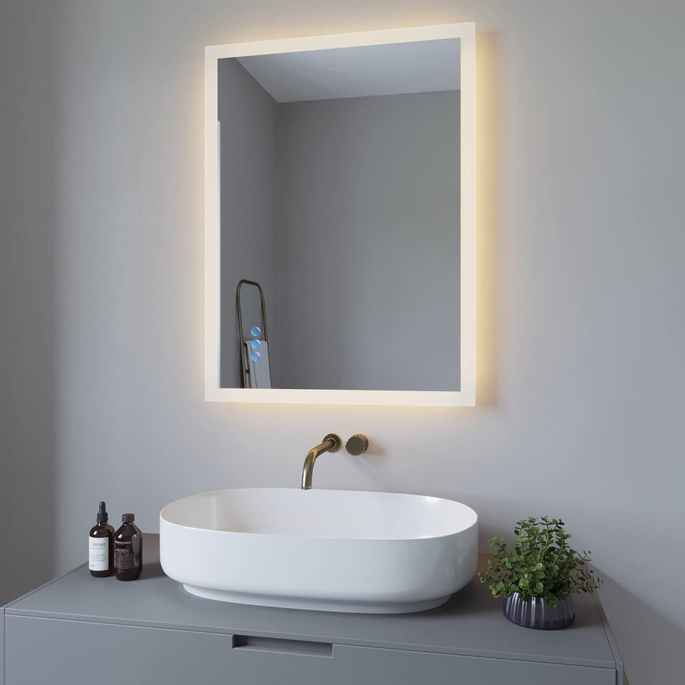 AQUABATOS BORAS-Serie Badspiegel mit indirekte LED Beleuchtung 80x60 cm Badezimmerspiegel für Gäste