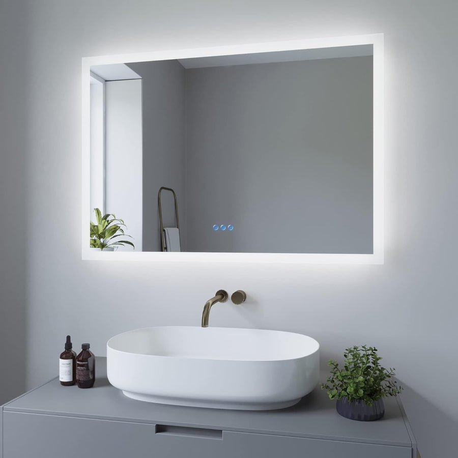 AQUABATOS 100x70cm Badspiegel mit Beleuchtung Badezimmerspiegel LED Lichtspiegel Wandspiegel. Touch-