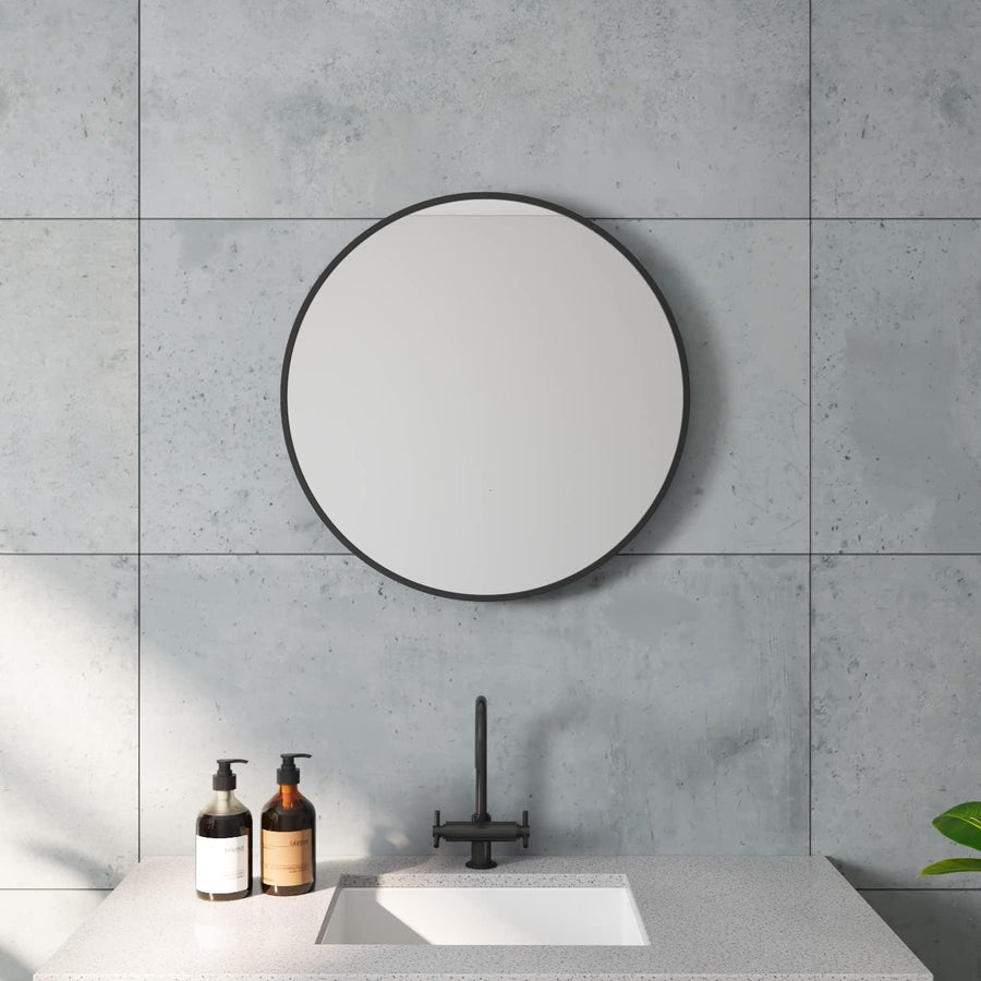 Rund Spiegel Schwarz Aluminiumrahmen Industrial Style ohne Beleuchtung 60 cm Wandspiegel Badezimmers