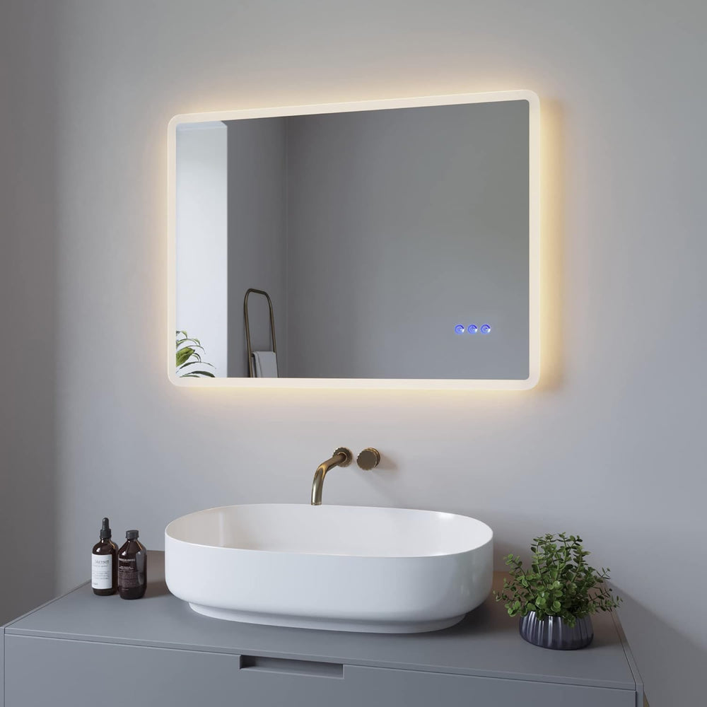 AQUABATOS 80x60 cm Badspiegel mit Beleuchtung Badezimmerspiegel LED Lichtspiegel Wandspiegel. Touch-
