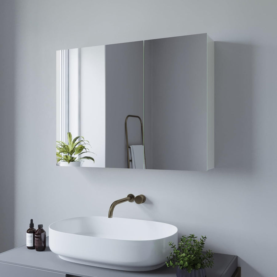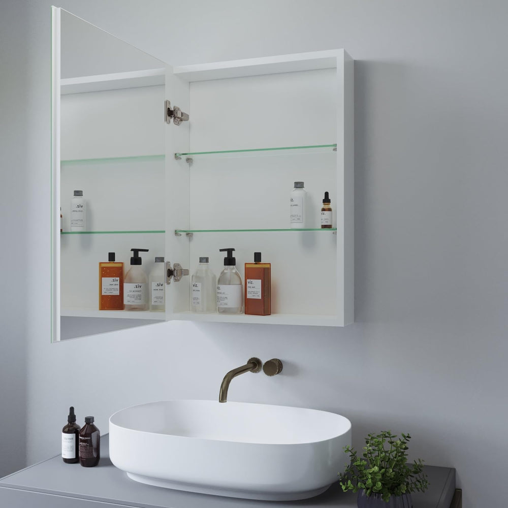 AQUABATOS Spiegelschrank Bad 50 x 70 cm ohne Beleuchtung Aluminium Rahmen Weiss matt Eintürig doppel