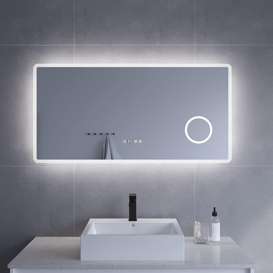 Badezimmerspiegel mit Licht Schminkspiegel Digital Uhr 120x60 cm Badspiegel mit LED Beleuchtung Kalt