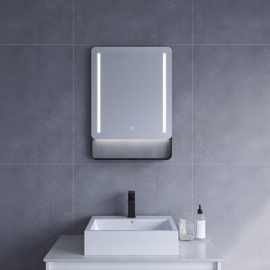 Badezimmer Spiegel mit Beleuchtung und Ablage in schwarz 50 x 70 cm Badspiegel mit hochwertigen Alum