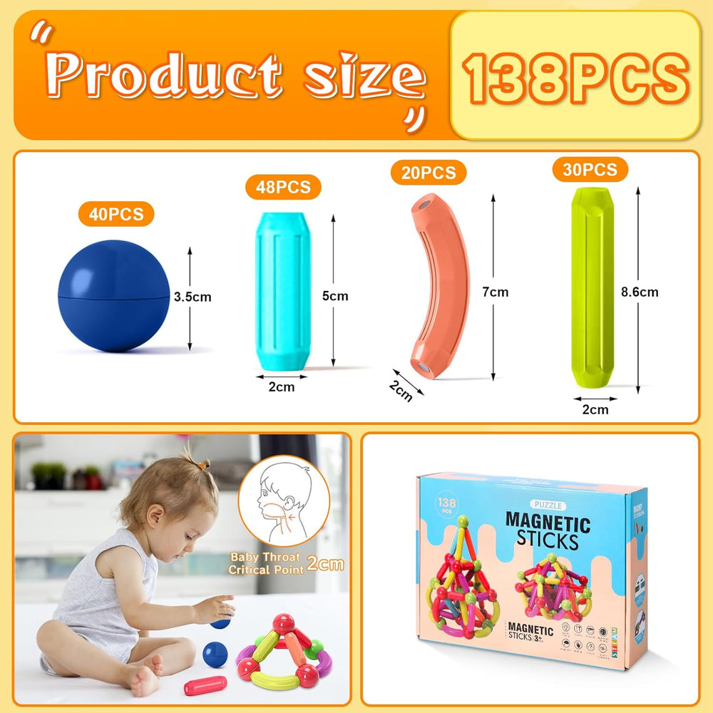 AQXONG 138 Pcs Magnetische Bausteine Spielzeug, 3D Konstruktions Spielzeug, Magnetspielzeug für Kind