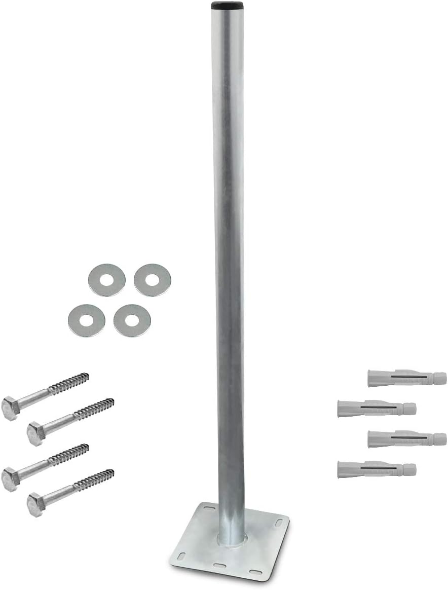 Mastfuss Standfuss 1m Mast Mastfuss + 4 Schrauben Dübel U Scheibe Set Stahl verzinkt Balkonbodenhalt
