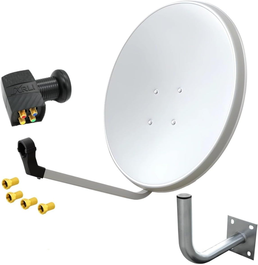 60 cm HD Sat Anlage Quad LNB Digital + Wandhalter 45 cm + 4X F-Stecker 4 Teilnehmer Antenne Grau UHD