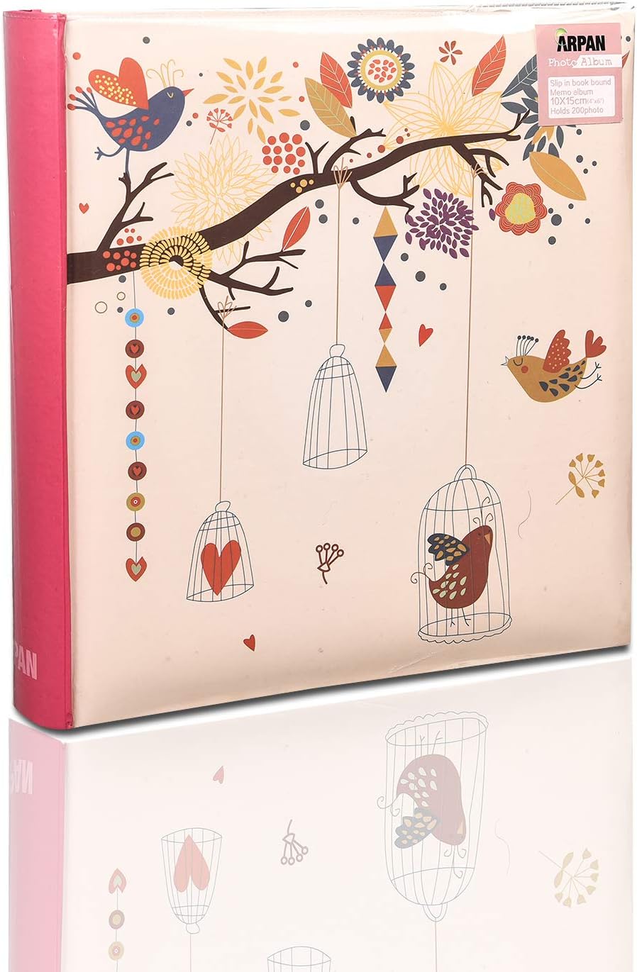 Arpan 13 x 18 cm Grosses Einsteck Fotoalbum für 200 Fotos - Vintage Vogel Volieren Käfig