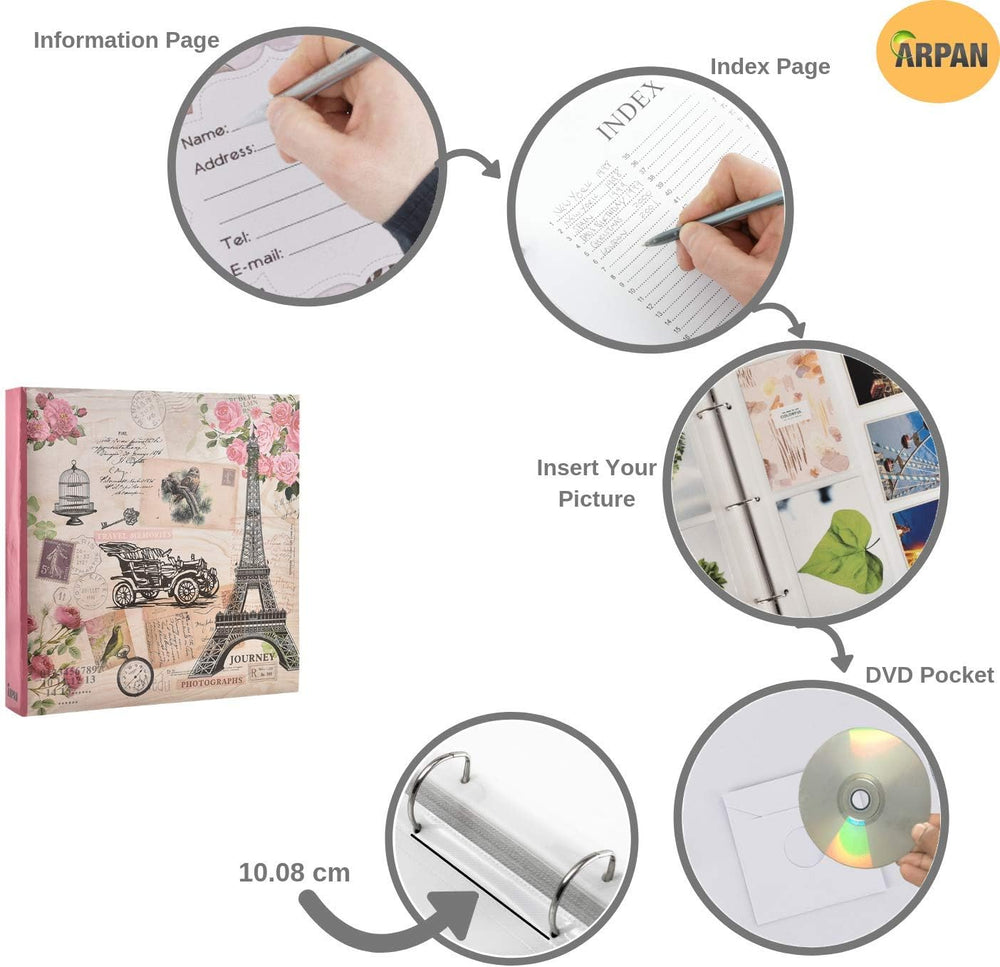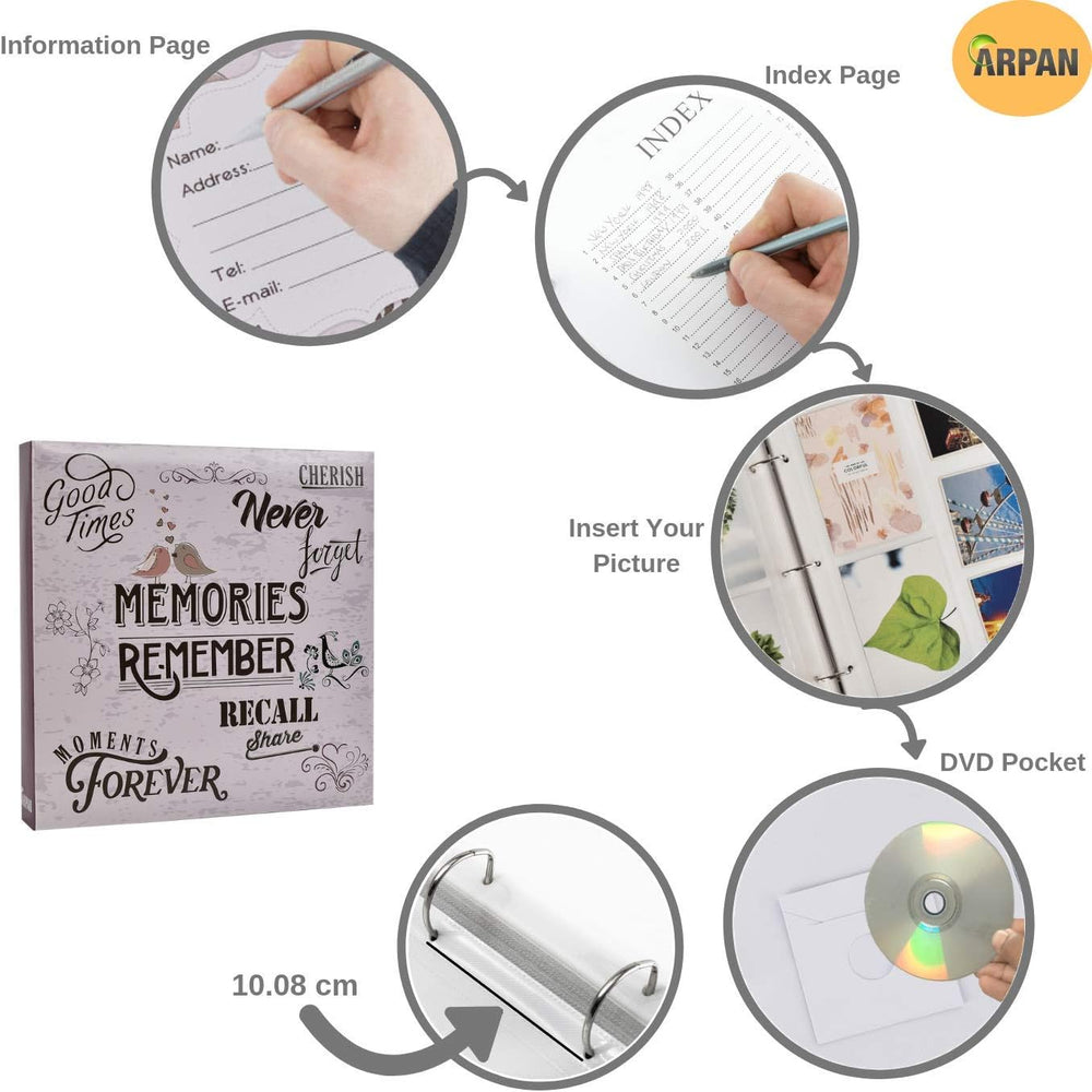 ARPAN Fotoalbum mit grossen Einstecktaschen, 3er-Ringbindung, Deckel im Slogan-Kunststil, für 500 Fo