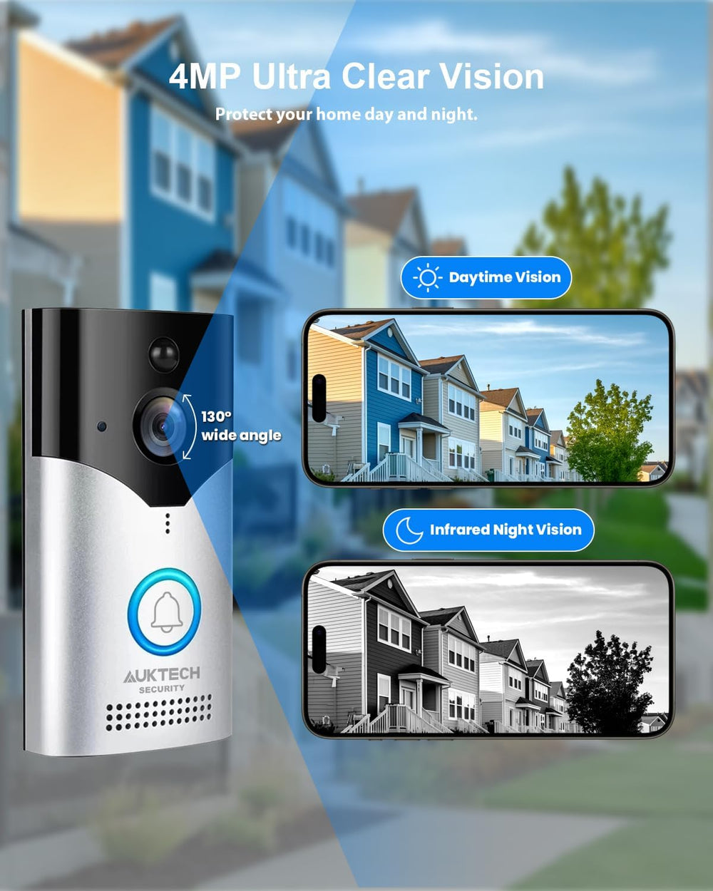 AUKTECH Türklingel mit Kamera, 4MP Video Türklingel Kabellos Akku mit Chime, 2.5K FHD Nachtsicht, PI
