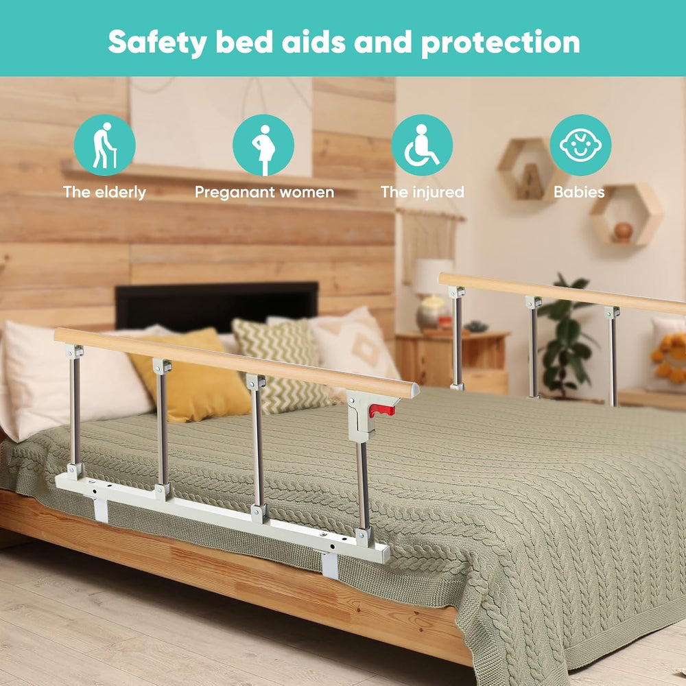 AUORUSI Bettgitter für Ältere, Faltbare Rausfallschutz Bettgitter Rausfallschutz,Holzfarbe Bettschut