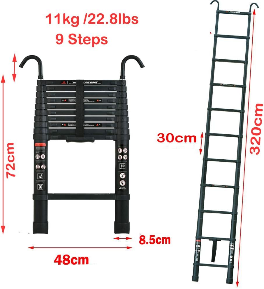 Einziehbare Leiter, 3,2 Meter Aluminium-Teleskopleiter Dachbodenleiter mit Dachhaken Verlängerungsle