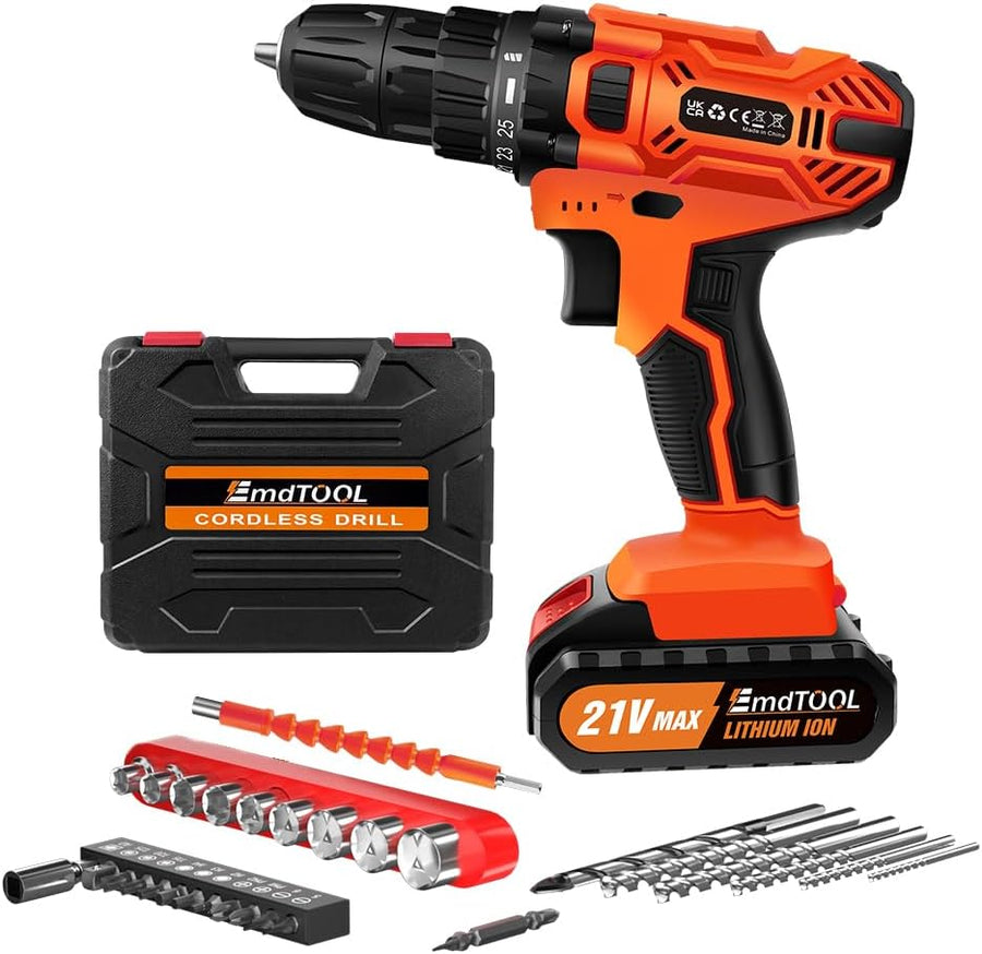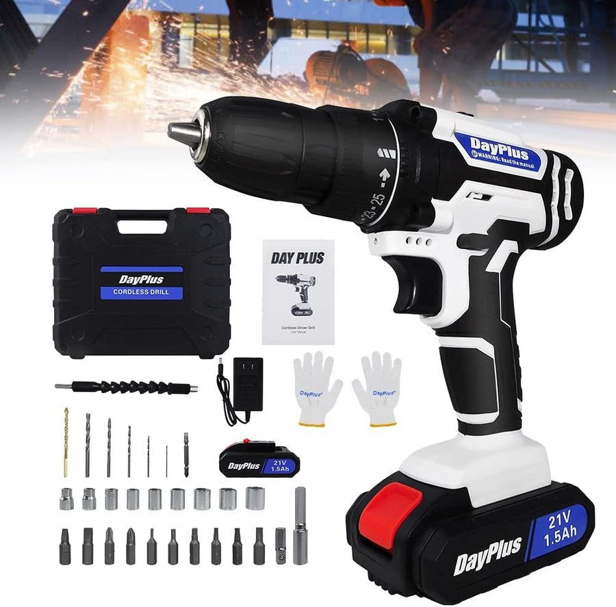 Akkuschrauber 21V Akku Bohrmaschine, 45Nm Akku-Bohrschrauber Set für DIY Projekt, 25+1 Drehmomentstu