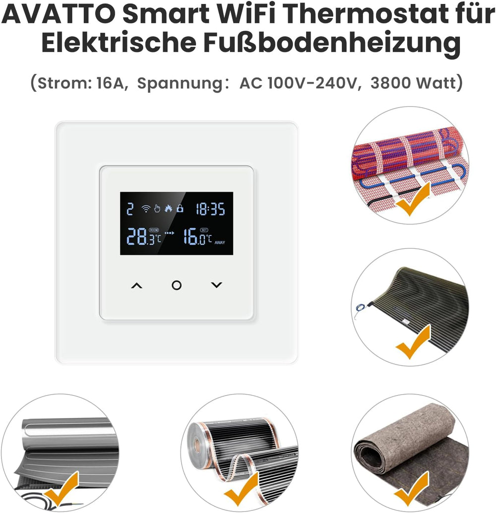 AVATTO Thermostat für Elektrische Fussbodenheizung Smart WiFi Thermostat Programmierbar Raumthermost