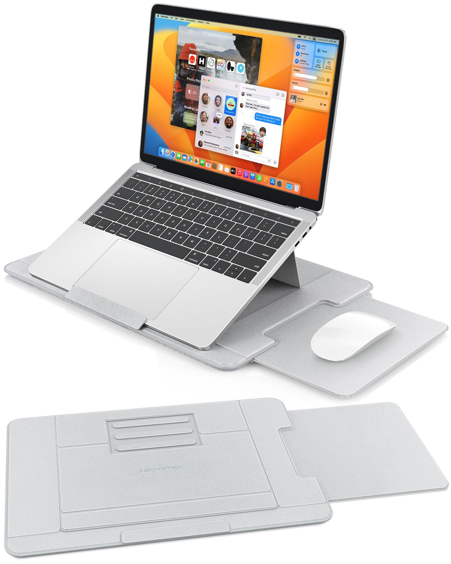 AboveTEK Tragbarer Laptopunterlage, 2-in-1 PU-Leder Faltbarer MacBook Ständer für Schreibtisch, Pass